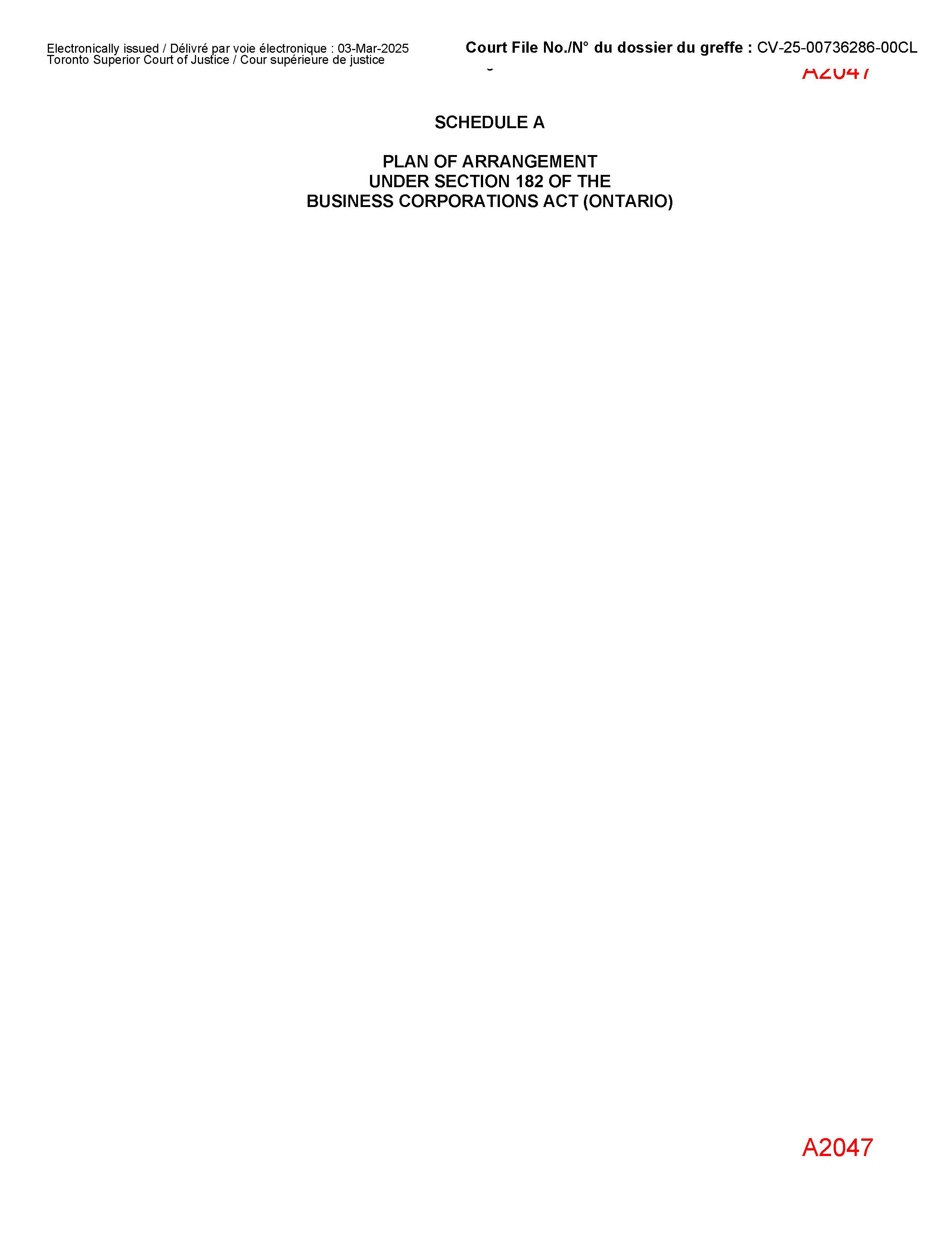 | · | 1000994085 Ontario, Inc., a corporation organized under the laws of Ontario, Canada | |