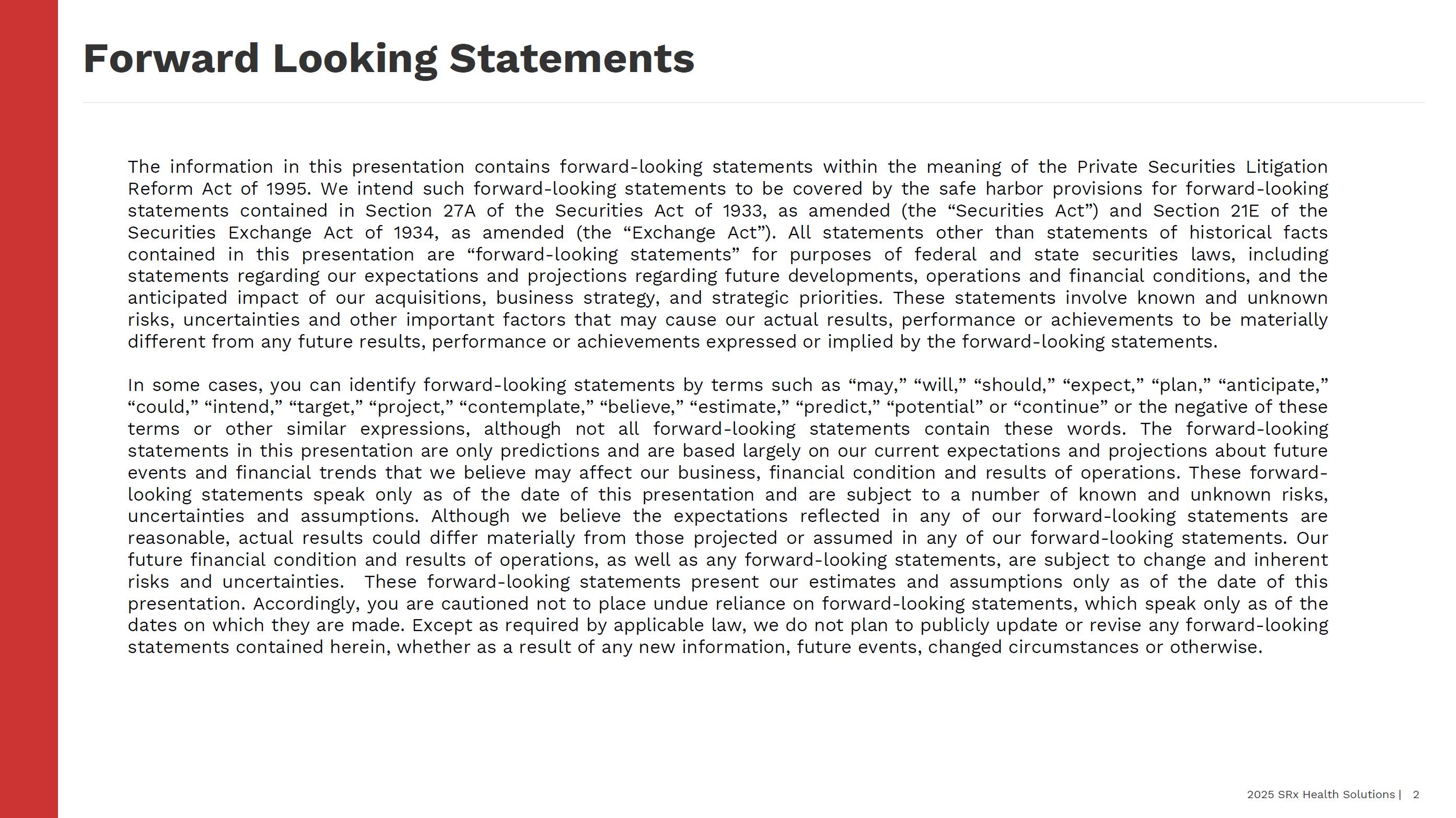 | May 7, 2025 | SRx Health Solutions, Inc. | |