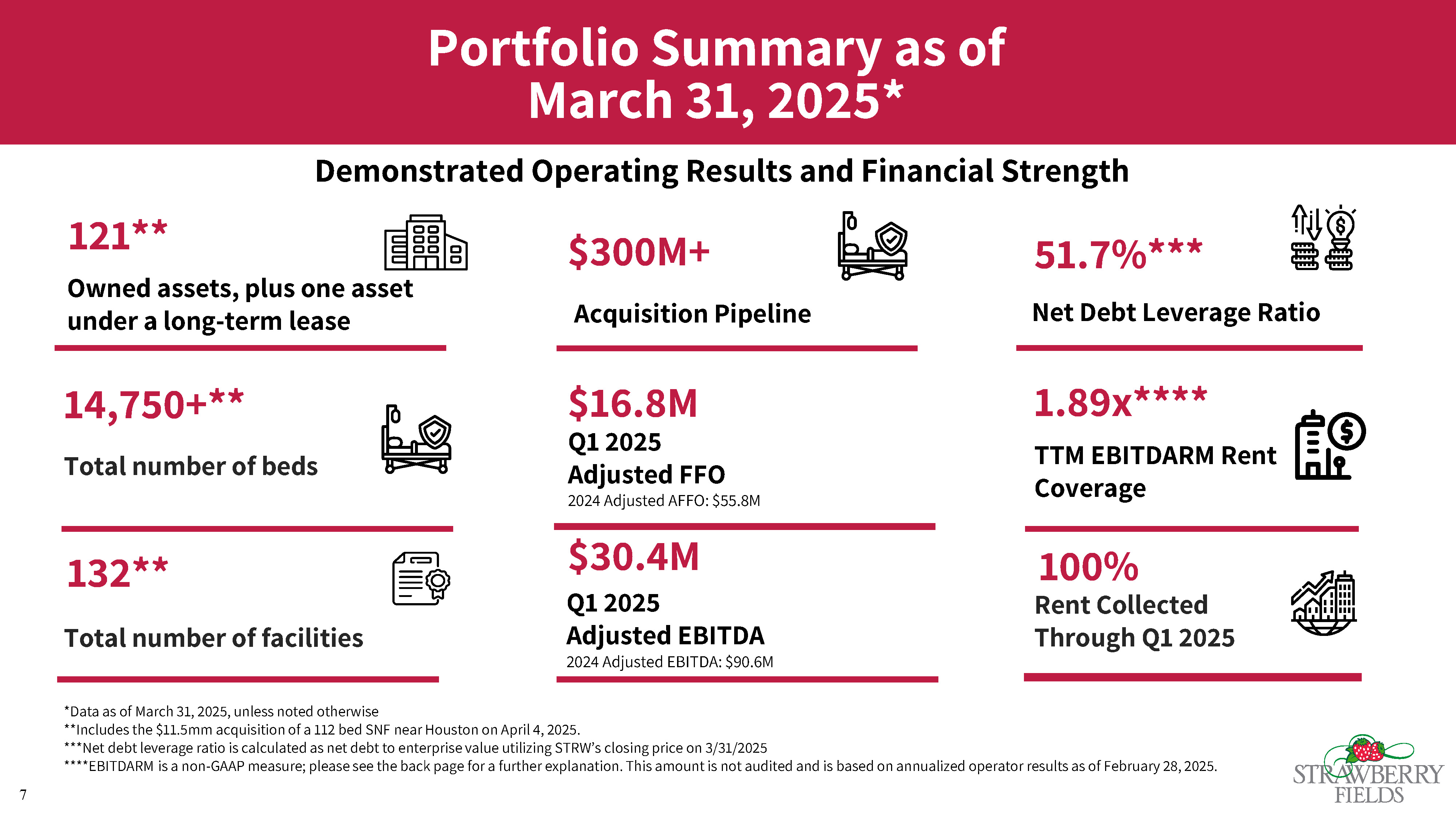 STRAWBERRY FIELDS REIT ANNOUNCES FIRST QUARTER 2025