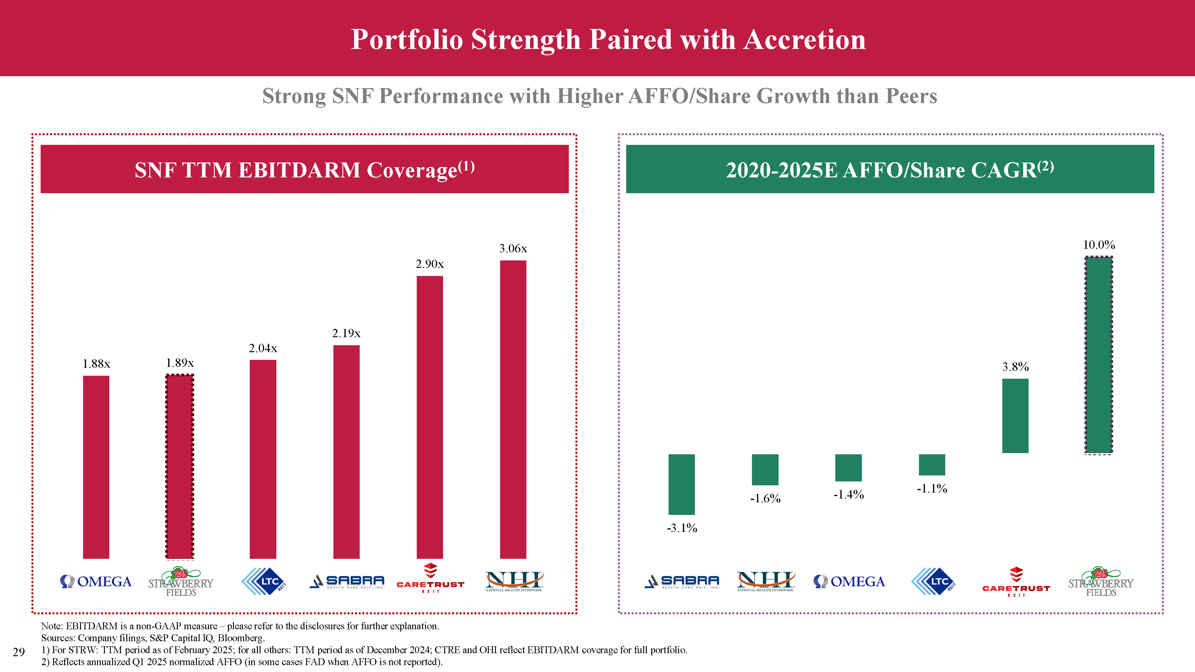 | ● | On January 2, 2025, the Company closed the acquisition for the purchase of six healthcare facilities located in Kansas. The purchase price for the facilities was $24.0 million, payable at the closing. The facilities are leased under a new 10-year master lease agreement to a group of third-party tenants. Under the master lease, (i) the tenants are on a triple net basis, and (ii) the tenants have 2 five-year options to extend the lease. The tenants operate the facilities as five skilled nursing facilities and one assisted living facility. The six facilities are comprised of 354 licensed beds. | |