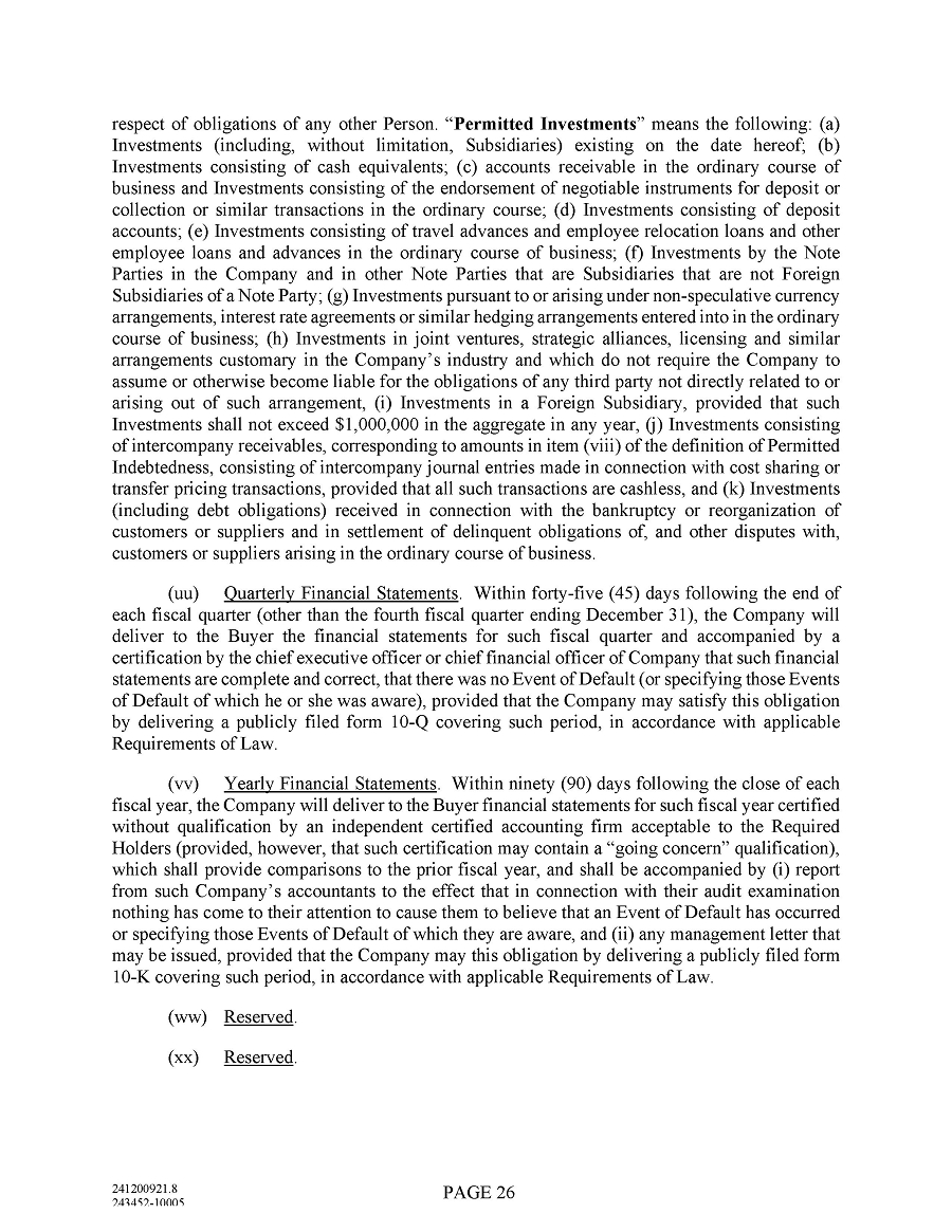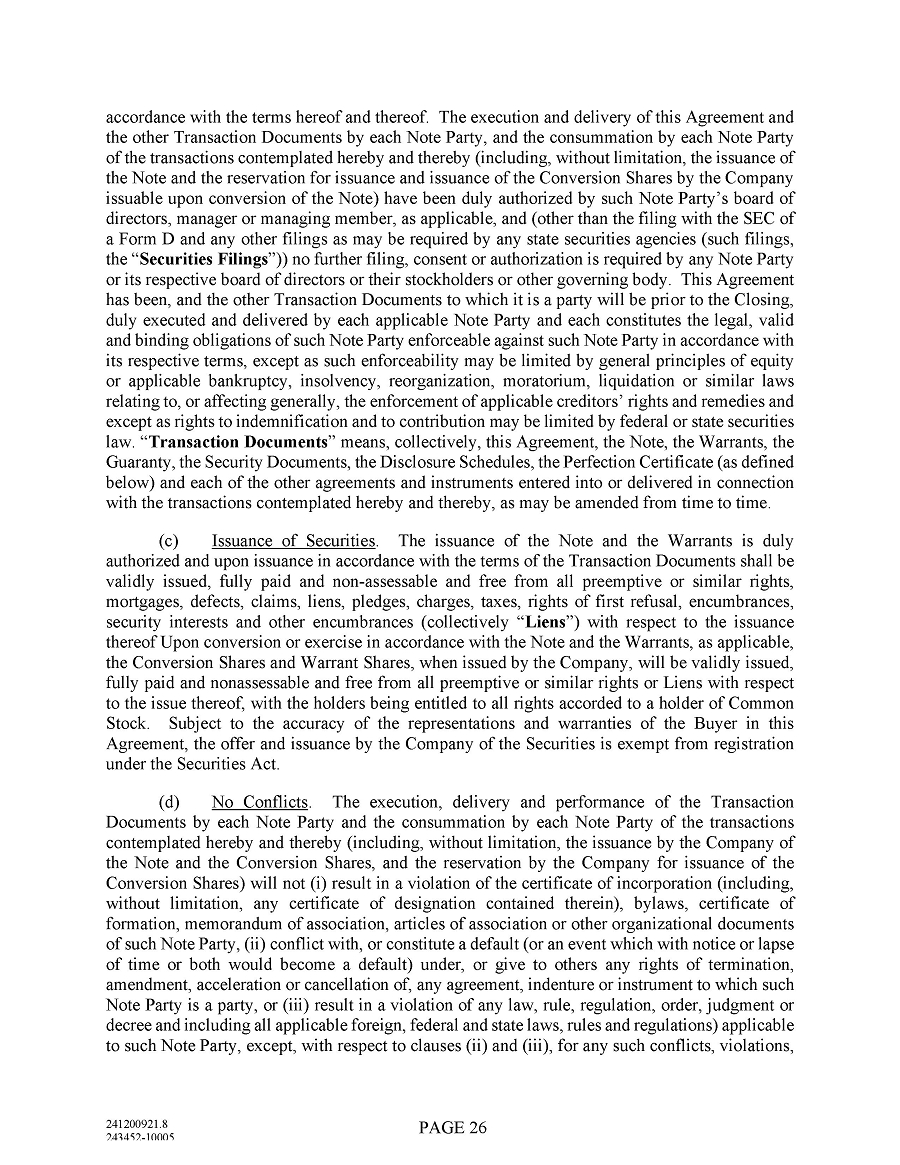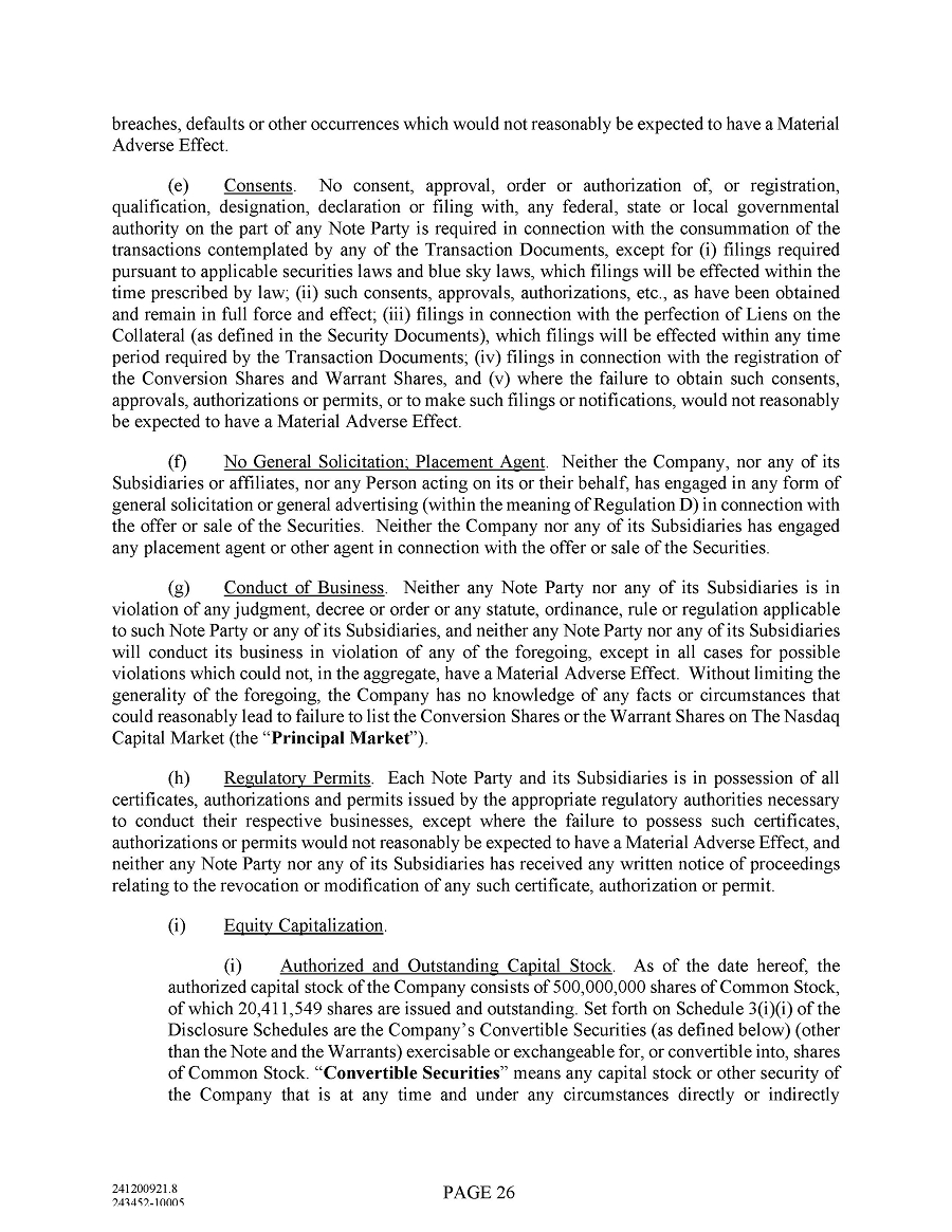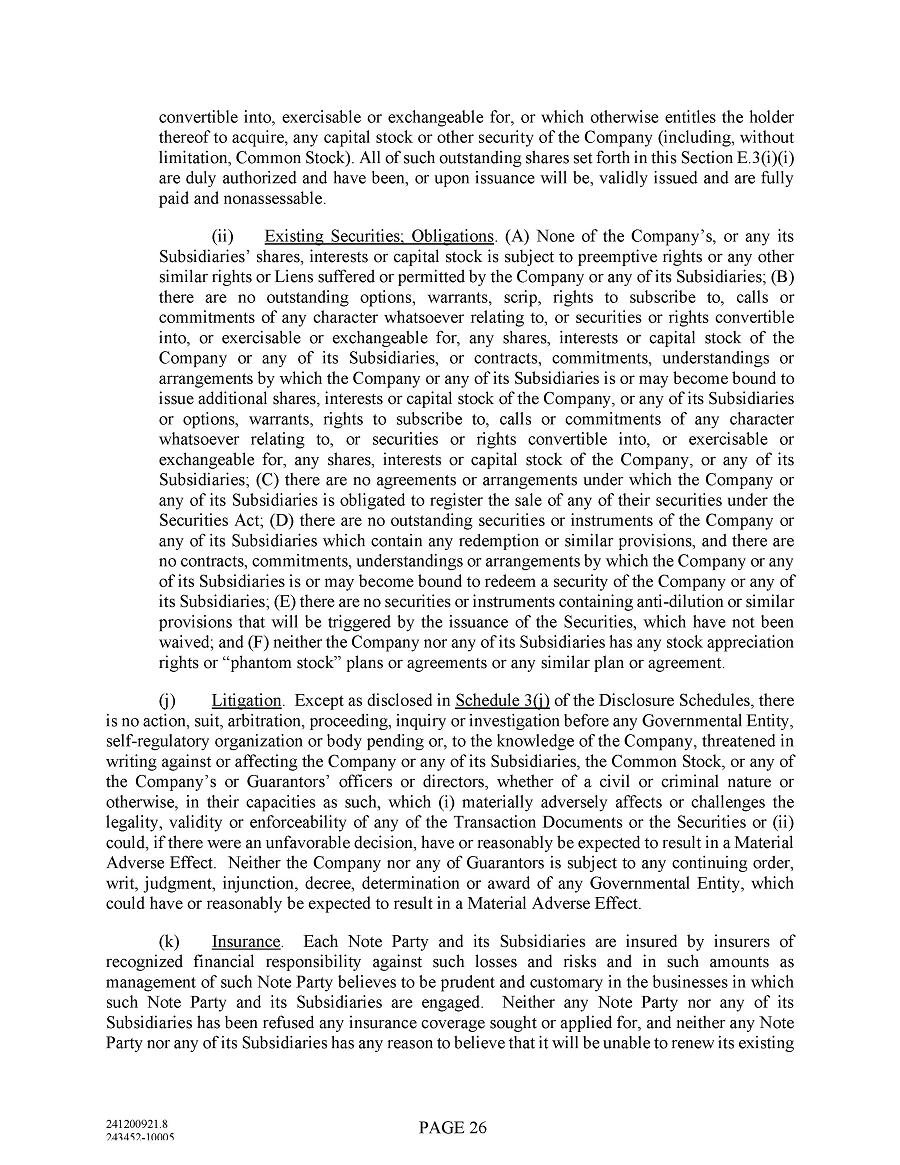 NEITHER THE ISSUANCE AND SALE OF THIS SENIOR SECURED CONVERTIBLE NOTE NOR THE SECURITIES INTO WHICH IT IS CONVERTIBLE HAVE BEEN REGISTERED UNDER THE SECURITIES ACT OF 1933, AS AMENDED, OR APPLICABLE STATE SECURITIES LAWS. THE SECURITIES MAY NOT BE OFFERED FOR SALE, SOLD, TRANSFERRED OR ASSIGNED (I) IN THE ABSENCE OF (A) AN EFFECTIVE REGISTRATION STATEMENT FOR THE SECURITIES UNDER THE SECURITIES ACT OF 1933, AS AMENDED, OR (B) AN OPINION OF COUNSEL TO THE HOLDER (IF REQUESTED BY THE COMPANY), IN A FORM REASONABLY ACCEPTABLE TO THE COMPANY, THAT REGISTRATION IS NOT REQUIRED UNDER SAID ACT OR (II) UNLESS SOLD OR ELIGIBLE TO BE SOLD PURSUANT TO RULE 144 OR RULE 144A UNDER SAID ACT. NOTWITHSTANDING THE FOREGOING, THE SECURITIES MAY BE PLEDGED IN CONNECTION WITH A BONA FIDE MARGIN ACCOUNT OR OTHER LOAN OR FINANCING ARRANGEMENT SECURED BY THE SECURITIES. ANY TRANSFEREE OF THIS NOTE SHOULD CAREFULLY REVIEW THE TERMS OF THIS NOTE, INCLUDING SECTIONS 3(c)(iii) AND 12(a) HEREOF. THE PRINCIPAL AMOUNT REPRESENTED BY THIS NOTE AND, ACCORDINGLY, THE SECURITIES ISSUABLE UPON CONVERSION HEREOF MAY BE LESS THAN THE AMOUNTS SET FORTH ON THE FACE HEREOF PURSUANT TO SECTION 3(c)(iii) OF THIS SENIOR SECURED CONVERTIBLE NOTE.