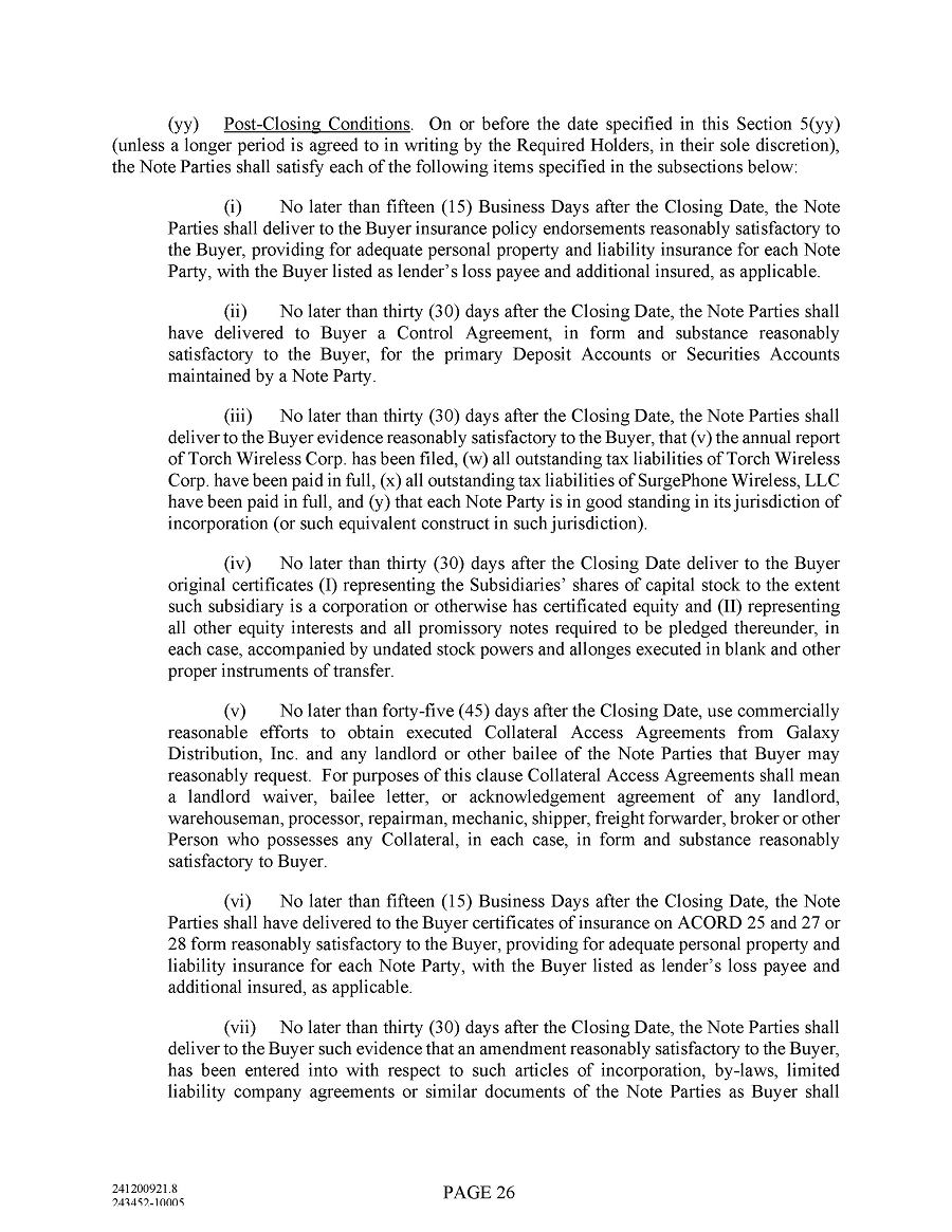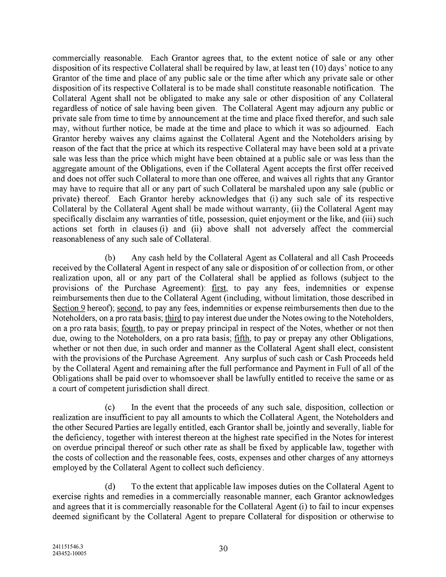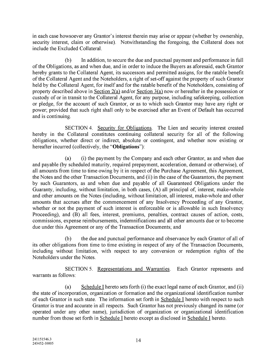 SECTION 14. Joinder. Each Person that is required to become a party to this Guaranty as a Guarantor pursuant to the Purchase Agreement after the date hereof shall become a Guarantor for all purposes of this Guaranty upon execution and delivery by such Person, and acknowledgment by the Collateral Agent, of a joinder agreement in form an substance reasonably satisfactory to the Collateral Agent (the date of such execution and delivery with respect to any such Person, a “Joinder Date”). On and after the applicable Joinder Date with respect to any such joinder, each reference in this Guaranty to “the date hereof” shall mean, as to such Person, the Joinder Date for such Person.