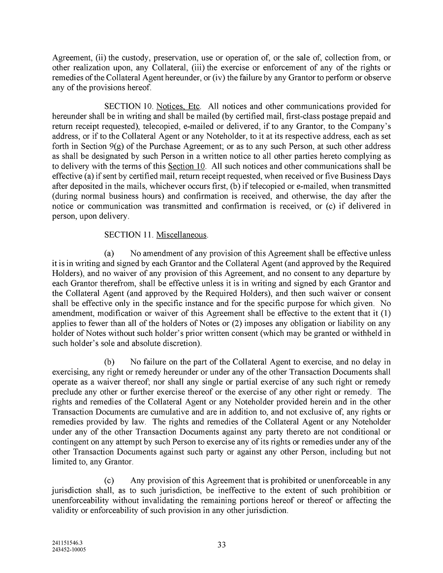 SECTION 8. Notices, Etc. Any notices, consents, waivers or other communications required or permitted to be given under the terms of this Guaranty must be in writing and will be deemed to have been delivered as set forth in Section 9(g) of the Purchase Agreement.