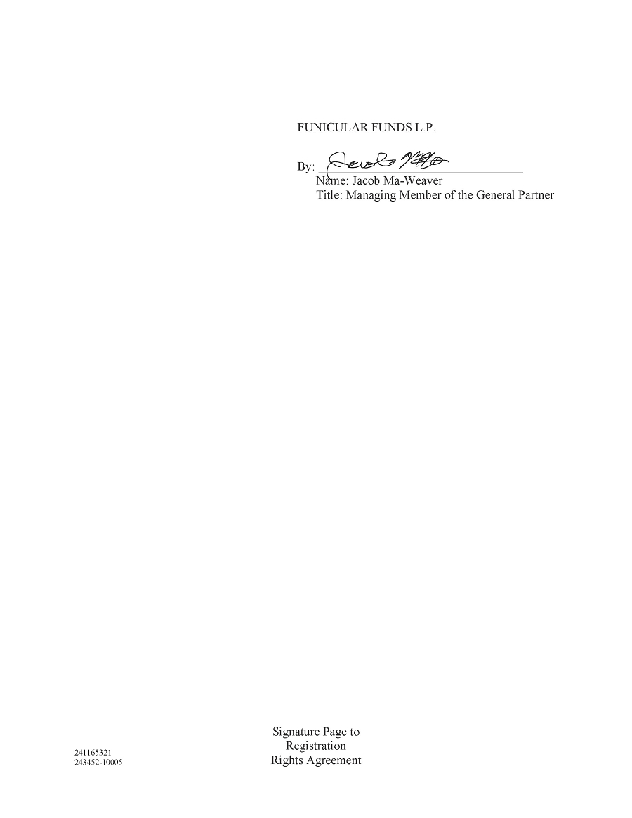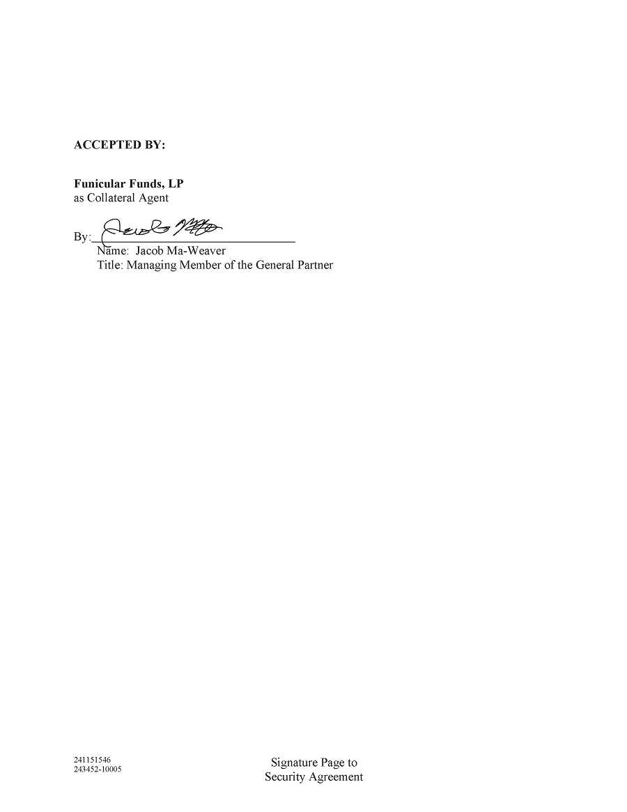 This Guaranty, dated as of May 12, 2025 (as amended, modified, supplemented, extended, renewed, restated or replaced from time to time, this “Guaranty”) is by and among the Guarantors identified on the signature page hereto and each other Person that becomes a party hereto (each a “Guarantor”; together, the “Guarantors”), in favor of Funicular Funds, LP, a Delaware limited partnership (“Funicular”) for the Noteholders and the other Secured Parties (in such capacity, together with its successors and assignees, the “Collateral Agent”).