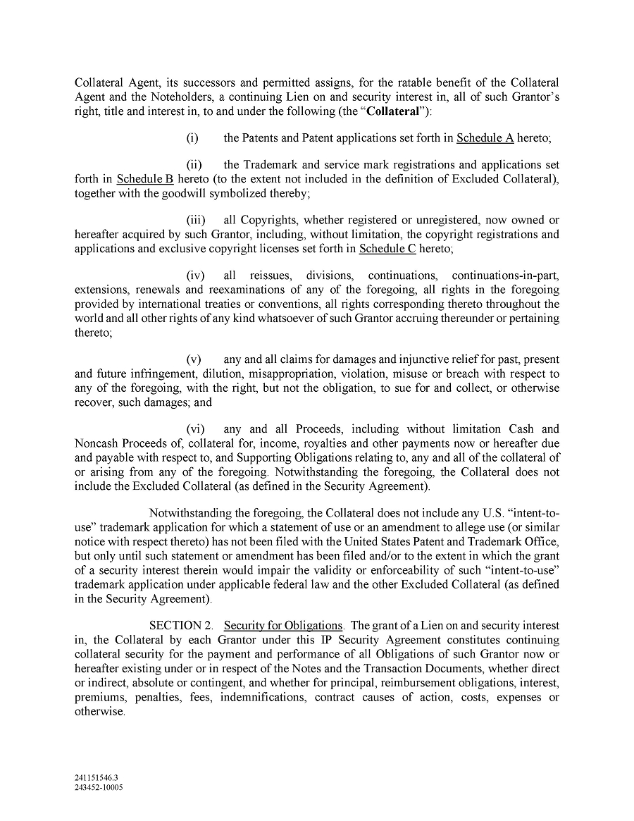 (c) This Guaranty is a continuing guaranty and shall (i) remain in full force and effect until Payment in Full of the Guaranteed Obligations (other than inchoate indemnity obligations) and shall not terminate for any reason prior to the respective Maturity Date of each Note (other than Payment in Full of the Guaranteed Obligations) and (ii) be binding upon each Guarantor and its respective successors and assigns. This Guaranty shall inure to the benefit of and be enforceable by the Collateral Agent on behalf of the Secured Parties and its respective successors, and permitted pledgees, transferees and assigns. Without limiting the generality of the foregoing sentence, the Collateral Agent or any other Secured Party may pledge, assign or otherwise transfer all or any portion of its rights and obligations under and subject to the terms of any Transaction Document to any other Person, and such other Person shall thereupon become vested with all the benefits in respect thereof granted to the Collateral Agent or such Secured Party (as applicable) herein or otherwise, in each case as provided in the Purchase Agreement or such Transaction Document.