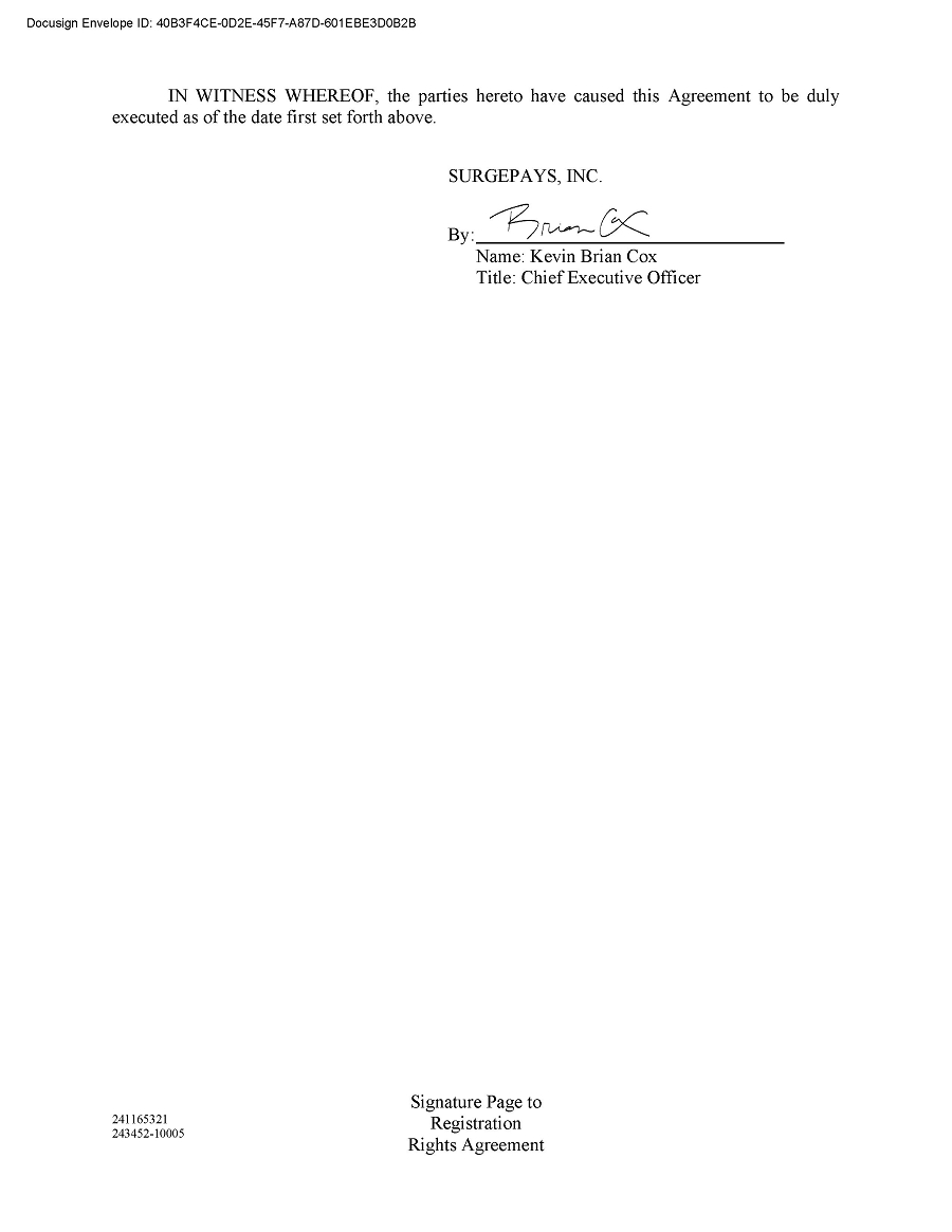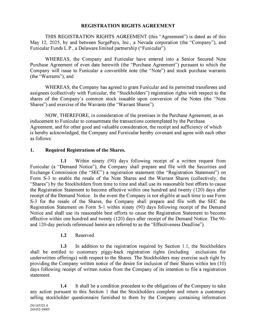 | 10.4 | Registration Rights Agreement, dated May 12, 2025, between SurgePays, Inc. and Funicular Funds, LP | |