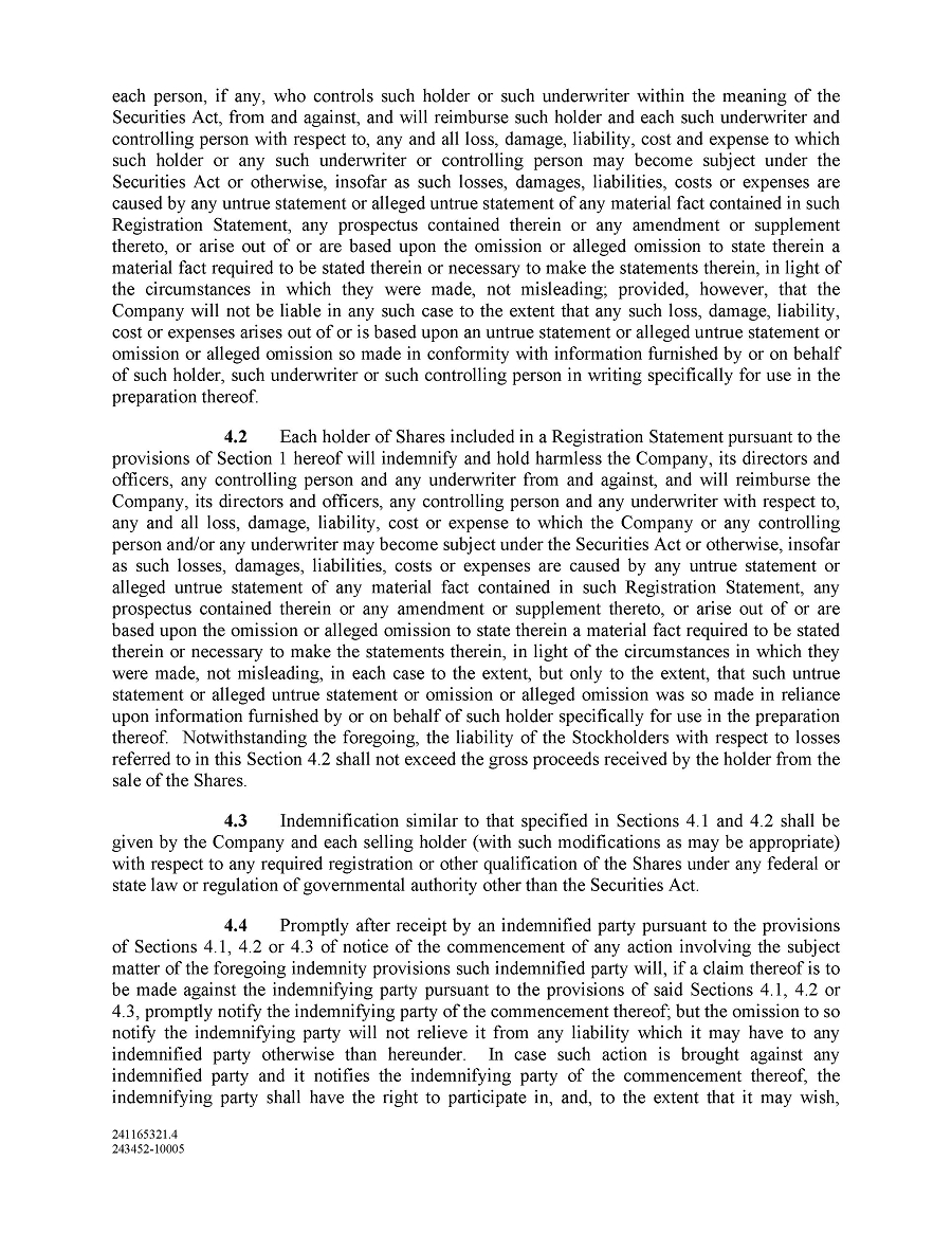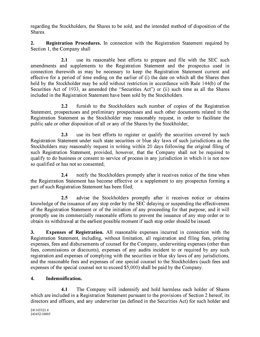 In the event of any fundamental transaction (as defined in the Note), the Investor shall have the option, upon request, to demand payment in an amount of cash equal to the sum of (a)(i) all outstanding and unpaid principal, multiplied by (ii) the Redemption Premium (as defined in the Note), plus (b) any other outstanding amounts, which payment shall be in full satisfaction of the obligations of the Company under the Note.