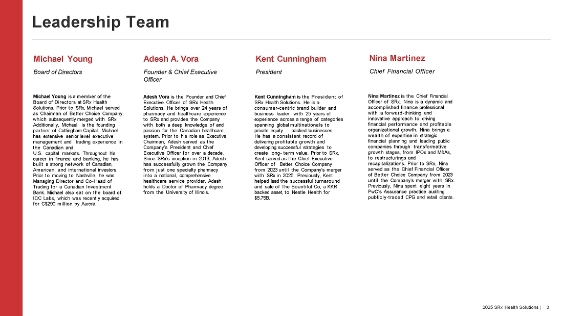 Adesh Vora, Chief Executive Officer of SRx Health Solutions, stated, “We are grateful to our Board and senior management for their efforts in strengthening our team structure and enhancing corporate governance. These improvements align with our renewed vision for SRx Health’s long-term strategic growth. Looking ahead, our core focus will be on supporting patients managing chronic and rare diseases, infusion services, clinical trials, and patient support programs to make healthcare simpler for our customers. At the same time, we will continue to build on our values—partnering with patients, pharmaceutical manufacturers, and prescriber relations.”