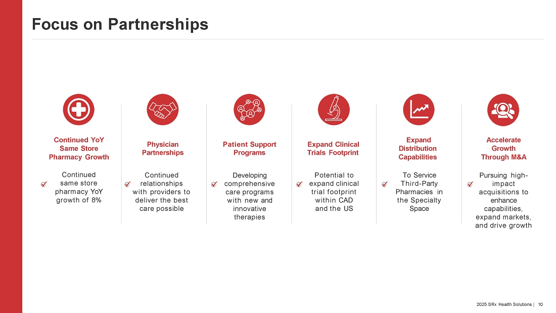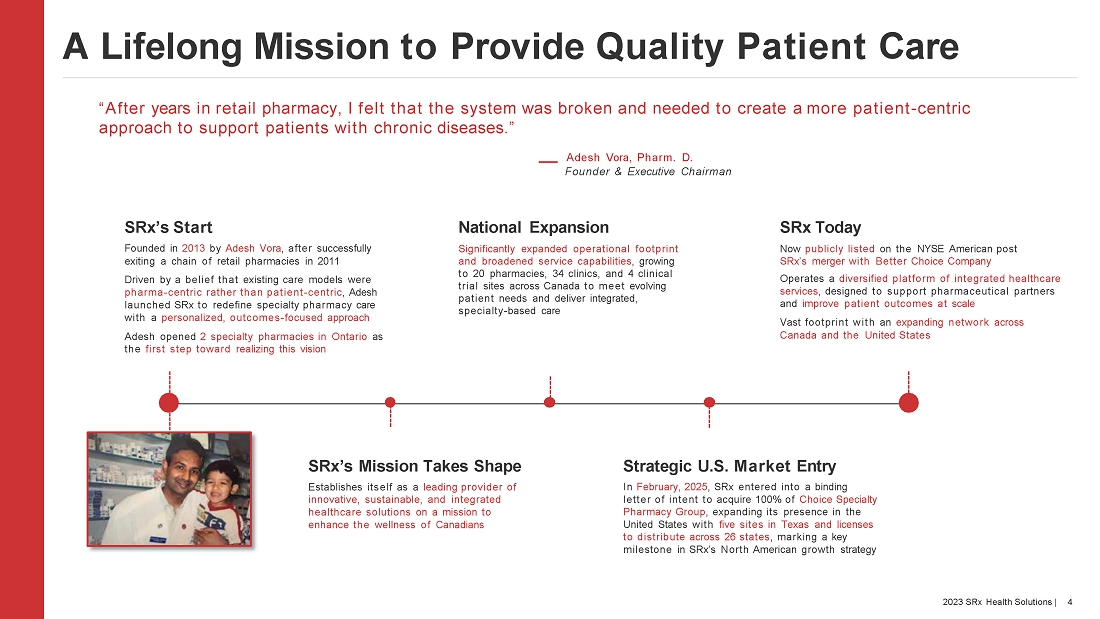 SRx Health Solutions Inc. is an integrated Canadian healthcare services provider that operates within the specialty healthcare industry. The SRx network extends across all ten Canadian provinces, making it one of the most accessible providers of comprehensive, integrated, and customized specialty healthcare services in the country. SRx combines years of industry knowledge, technology, and patient-centric focus to create strategies and solutions that consistently exceed client expectations and drive critical patient care initiatives aimed to improve the wellness of Canadians. For more information on SRx Health Solutions Inc., please visit www.srxhealth.com.