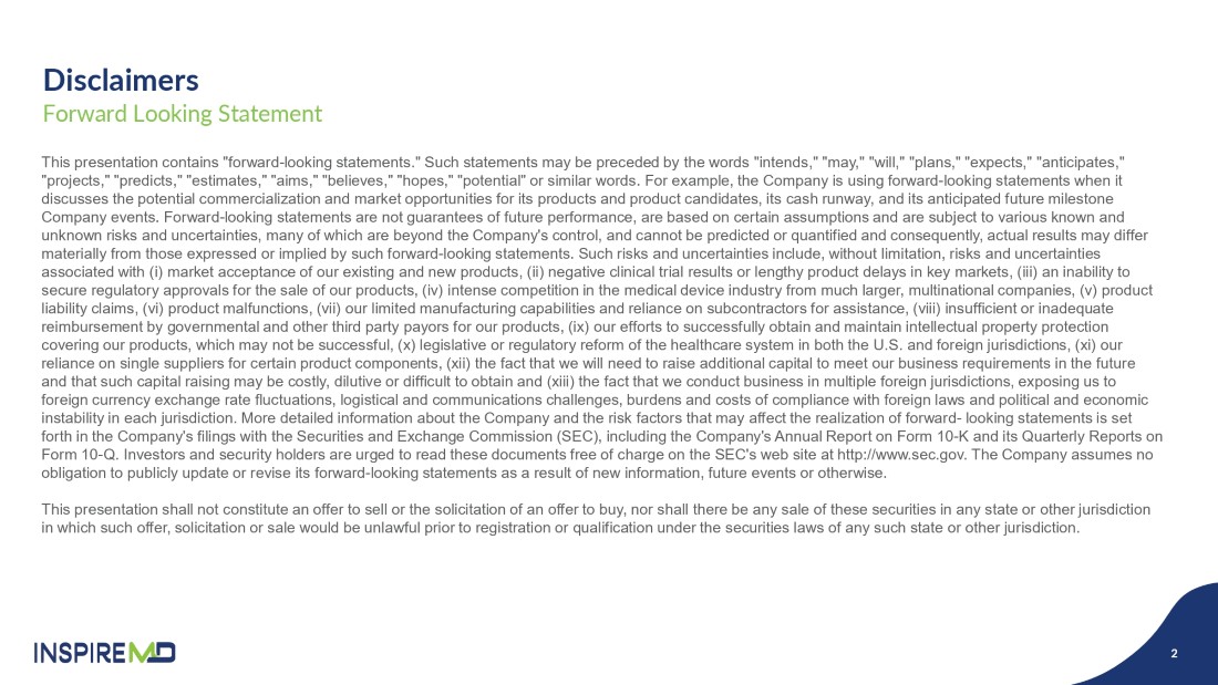 This press release contains “forward-looking statements.” Forward-looking statements include, but are not limited to, statements regarding InspireMD or its management team’s expectations, hopes, beliefs, intentions or strategies regarding future events, future financial performance, strategies, expectations, competitive environment and regulation, including potential U.S. commercial launch and expectations regarding the exercise of any warrants. Such statements may be preceded by the words “intends,” “may,” “will,” “plans,” “expects,” “anticipates,” “projects,” “predicts,” “estimates,” “aims,” “believes,” “hopes,” “potential”, “scheduled” or similar words. Forward-looking statements are not guarantees of future performance, are based on certain assumptions and are subject to various known and unknown risks and uncertainties, many of which are beyond the company’s control, and cannot be predicted or quantified and consequently, actual results may differ materially from those expressed or implied by such forward-looking statements. Such risks and uncertainties include, without limitation, risks and uncertainties associated with our history of recurring losses and negative cash flows from operating activities; substantial doubt about our ability to continue as a going concern; significant future commitments and the uncertainty regarding the adequacy of our liquidity to pursue our complete business objectives; our need to raise additional capital to meet our business requirements in the future and such capital raising may be costly or difficult to obtain and could dilute out stockholders’ ownership interests; market acceptance of our products; an inability to secure and maintain regulatory approvals for the sale of our products; negative clinical trial results or lengthy product delays in key markets; our ability to maintain compliance with the Nasdaq listing standards; our ability to generate revenues from our products and obtain and maintain regulatory approvals for our products; our ability to adequately protect our intellectual property; our dependence on a single manufacturing facility and our ability to comply with stringent manufacturing quality standards and to increase production as necessary; the risk that the data collected from our current and planned clinical trials may not be sufficient to demonstrate that our technology is an attractive alternative to other procedures and products; intense competition in our industry, with competitors having substantially greater financial, technological, research and development, regulatory and clinical, manufacturing, marketing and sales, distribution and personnel resources than we do; entry of new competitors and products and potential technological obsolescence of our products; inability to carry out research, development and commercialization plans; loss of a key customer or supplier; technical problems with our research and products and potential product liability claims; product malfunctions; price increases for supplies and components; insufficient or inadequate reimbursement by governmental and other third-party payers for our products; our efforts to successfully obtain and maintain intellectual property protection covering our products, which may not be successful; adverse federal, state and local government regulation, in the United States, Europe or Israel and other foreign jurisdictions; the fact that we conduct business in multiple foreign jurisdictions, exposing us to foreign currency exchange rate fluctuations, logistical and communications challenges, burdens and costs of compliance with foreign laws and political and economic instability in each jurisdiction; the escalation of hostilities in Israel, which could impair our ability to manufacture our products; and current or future unfavorable economic and market conditions and adverse developments with respect to financial institutions and associated liquidity risk. More detailed information about the Company and the risk factors that may affect the realization of forward-looking statements is set forth in the Company’s filings with the Securities and Exchange Commission (SEC), including the Company’s Annual Report on Form 10-K and its Quarterly Reports on Form 10-Q. Investors and security holders are urged to read these documents free of charge on the SEC’s web site at http://www.sec.gov. The Company assumes no obligation to publicly update or revise its forward-looking statements as a result of new information, future events or otherwise.