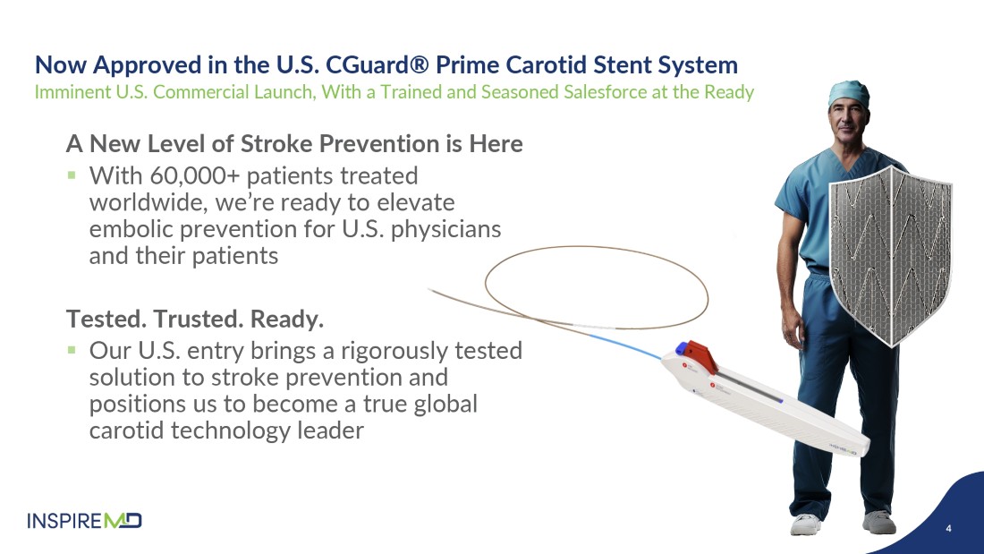 Miami, Florida — June 24, 2025 (GLOBE NEWSWIRE) – InspireMD, Inc. (the “Company”) (Nasdaq: NSPR), developer of the CGuard Prime Carotid Stent System for the prevention of stroke, today announced that the U.S. Food and Drug Administration (FDA) has granted premarket application (PMA) approval of the CGuard Prime Carotid Stent System in the United States.