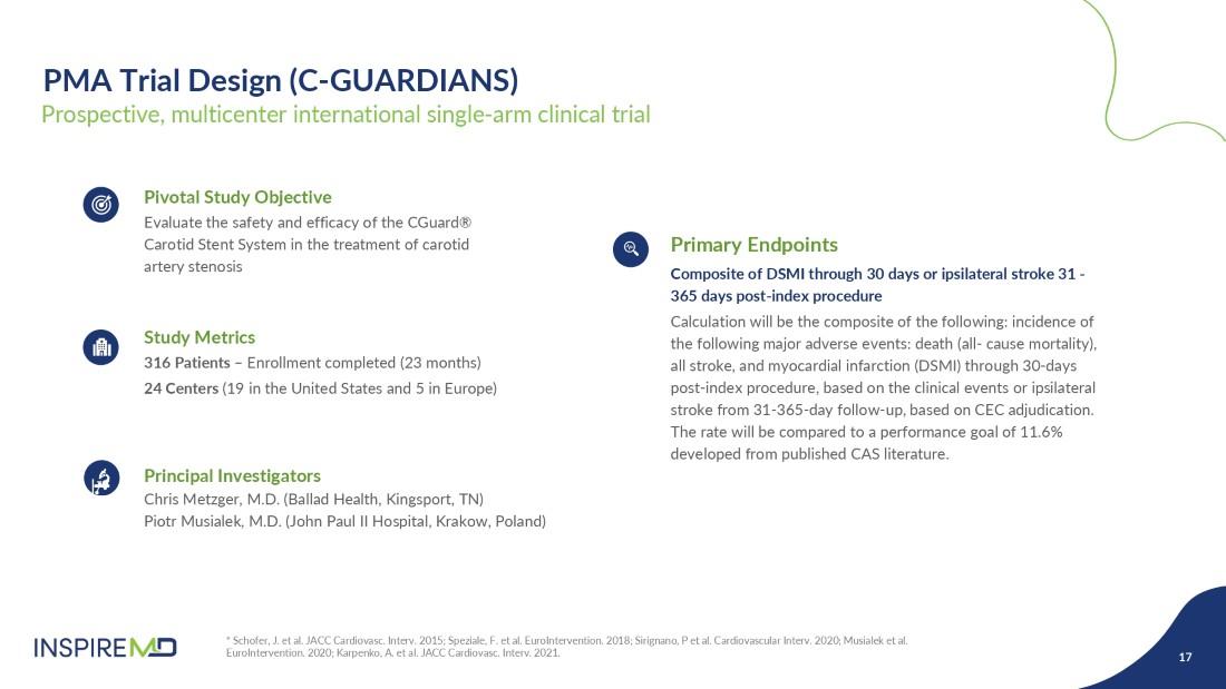 The C-GUARDIANS clinical trial evaluated the safety and efficacy of the CGuard Carotid Stent System for the treatment of carotid artery stenosis. The study enrolled 316 patients across 24 trial sites in the United States and Europe.