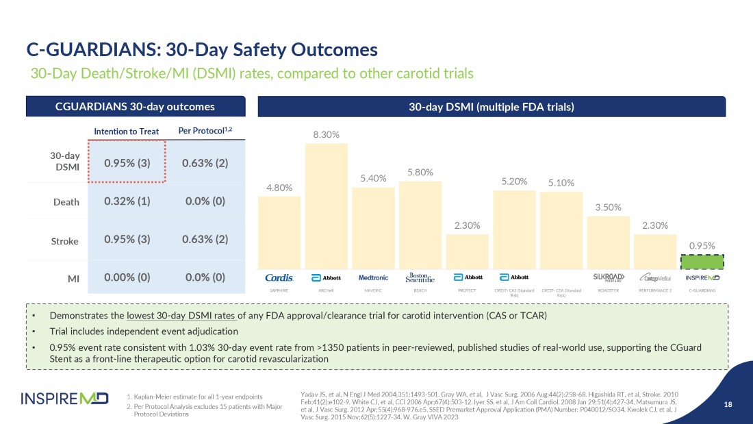 The PMA approval is backed by best-in-class evidence from the Company’s C-GUARDIANS pivotal trial, first presented at the Leipzig Interventional Course (LINC) in May 2024. The study, which enrolled 316 patients across 24 sites in the United States and Europe, evaluated the safety and efficacy of CGuard Prime for treating carotid artery stenosis. CGuard Prime demonstrated the lowest 30-day (0.95%) and 1-year (1.93%) primary endpoint major adverse event rates of any pivotal study of carotid intervention.