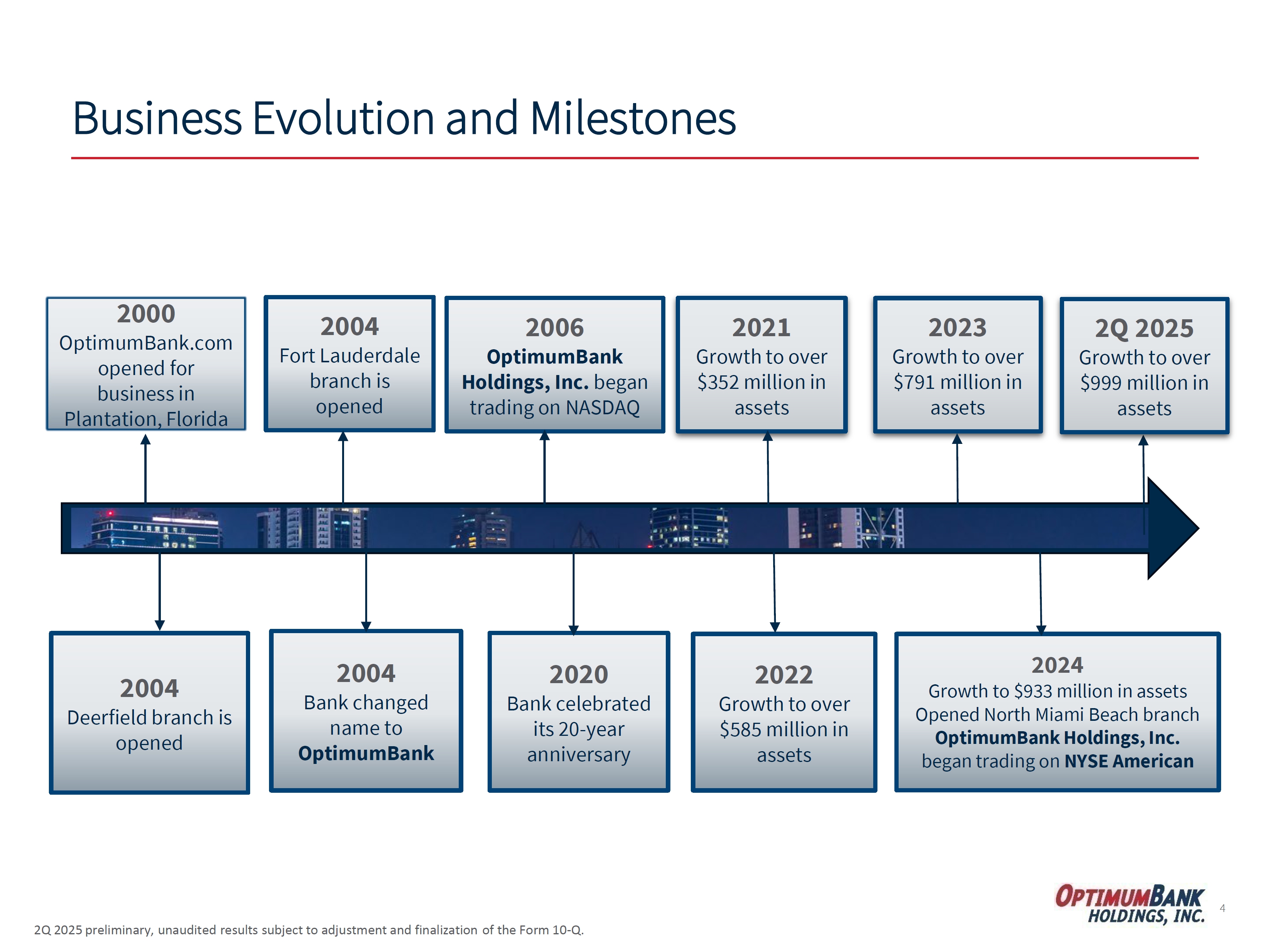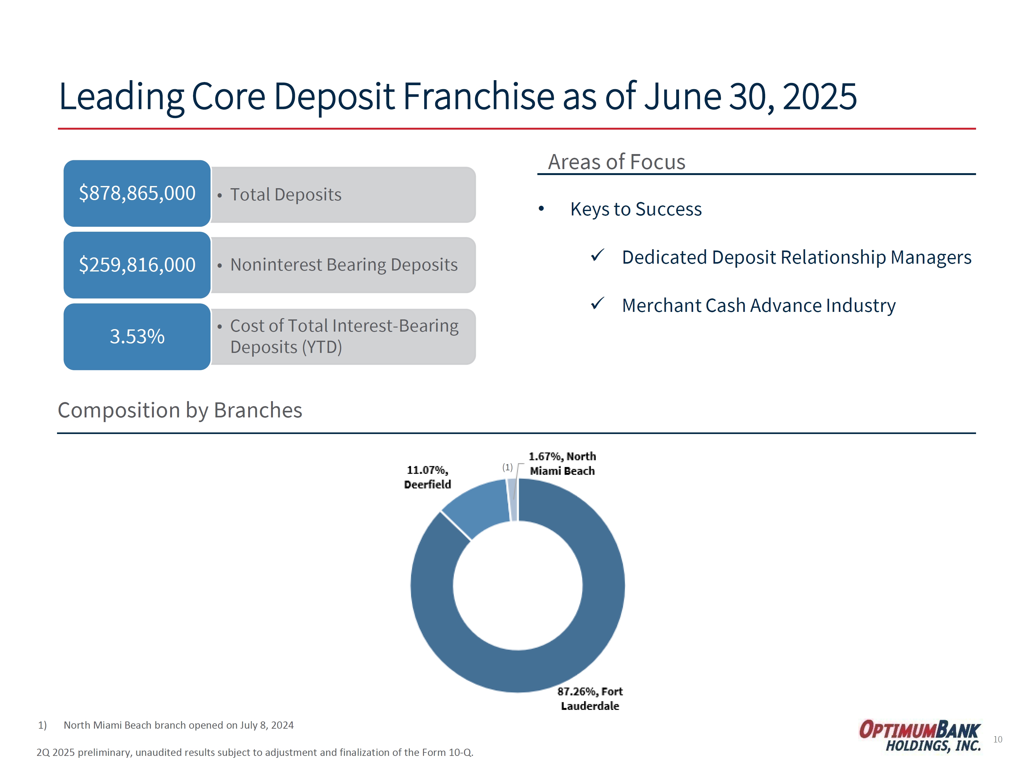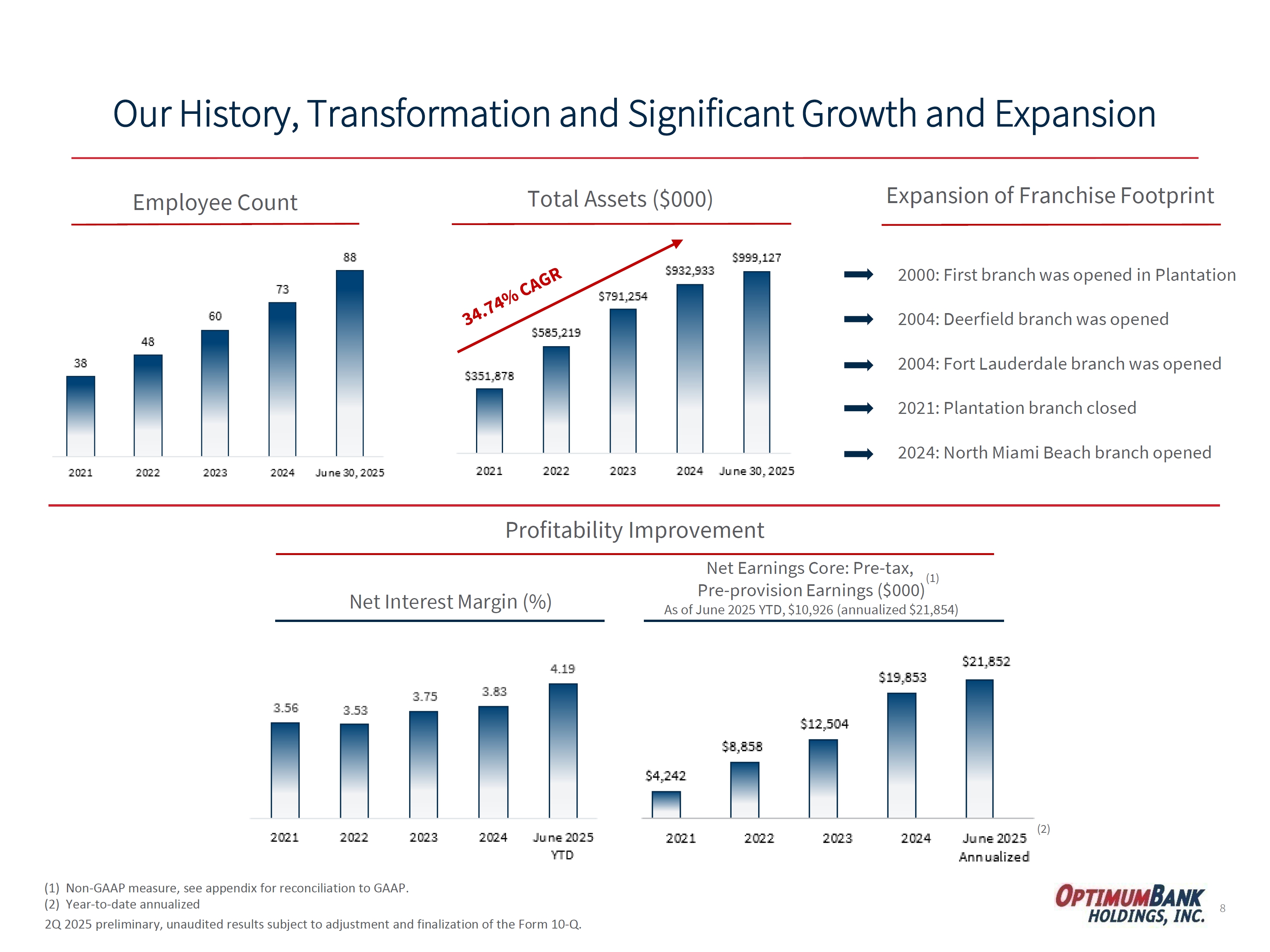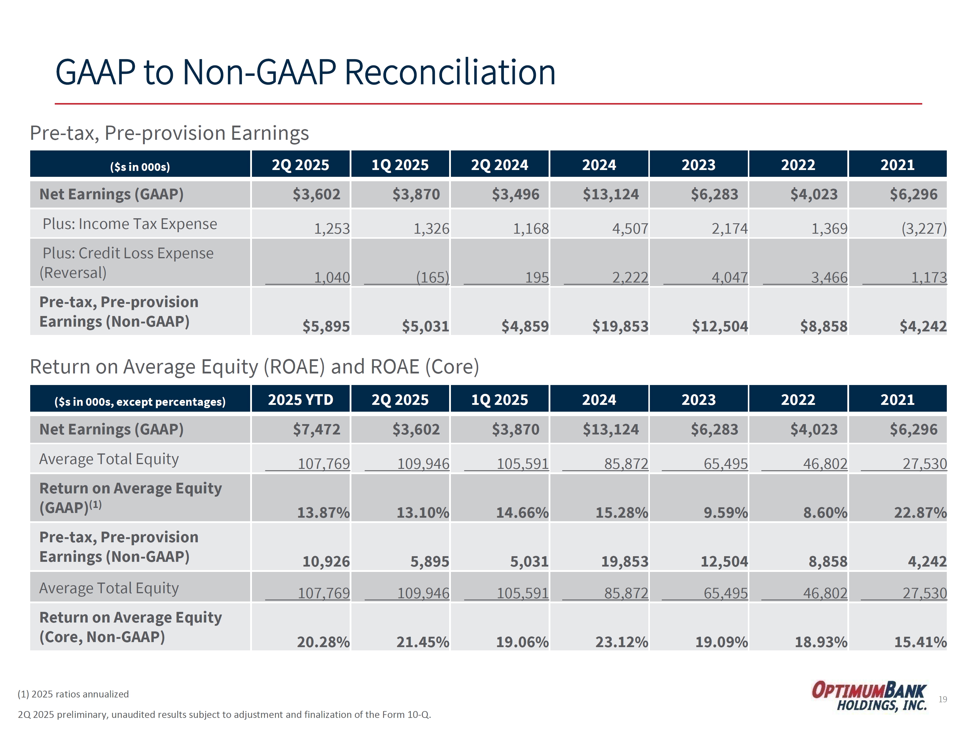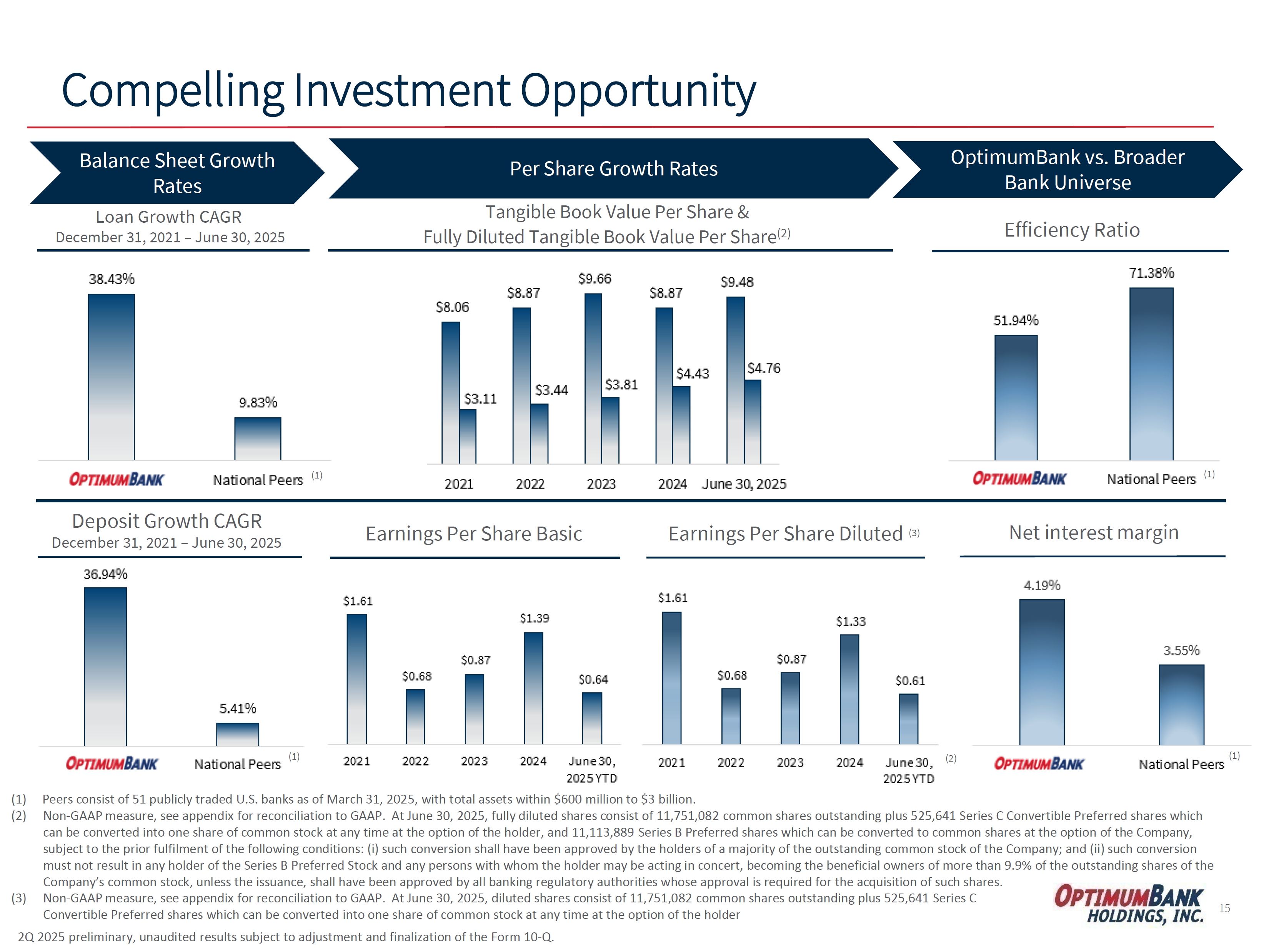 On July 24, 2025, OptimumBank Holdings, Inc. released a presentation describing its unaudited results of operations for the period ended June 30, 2025.