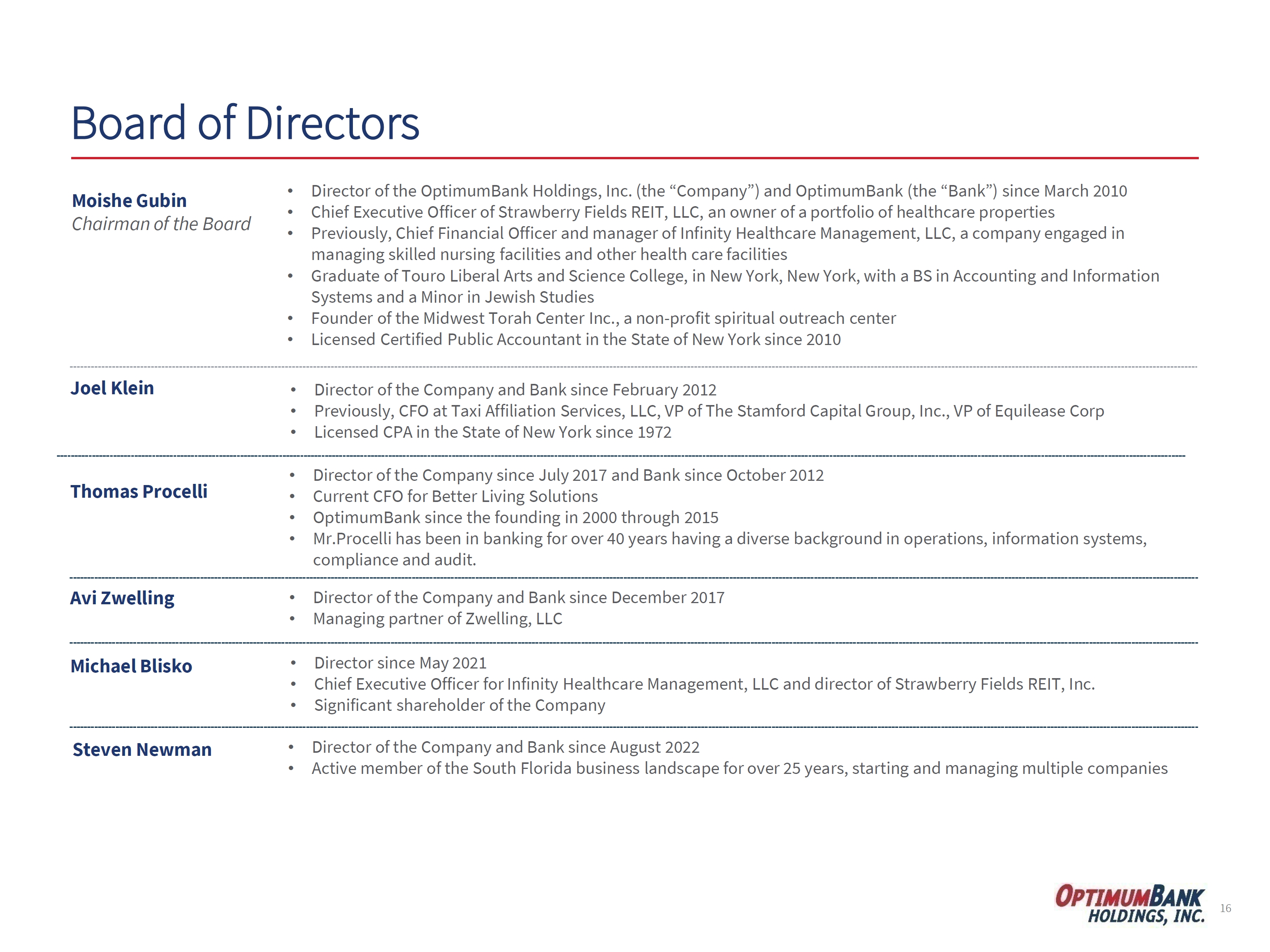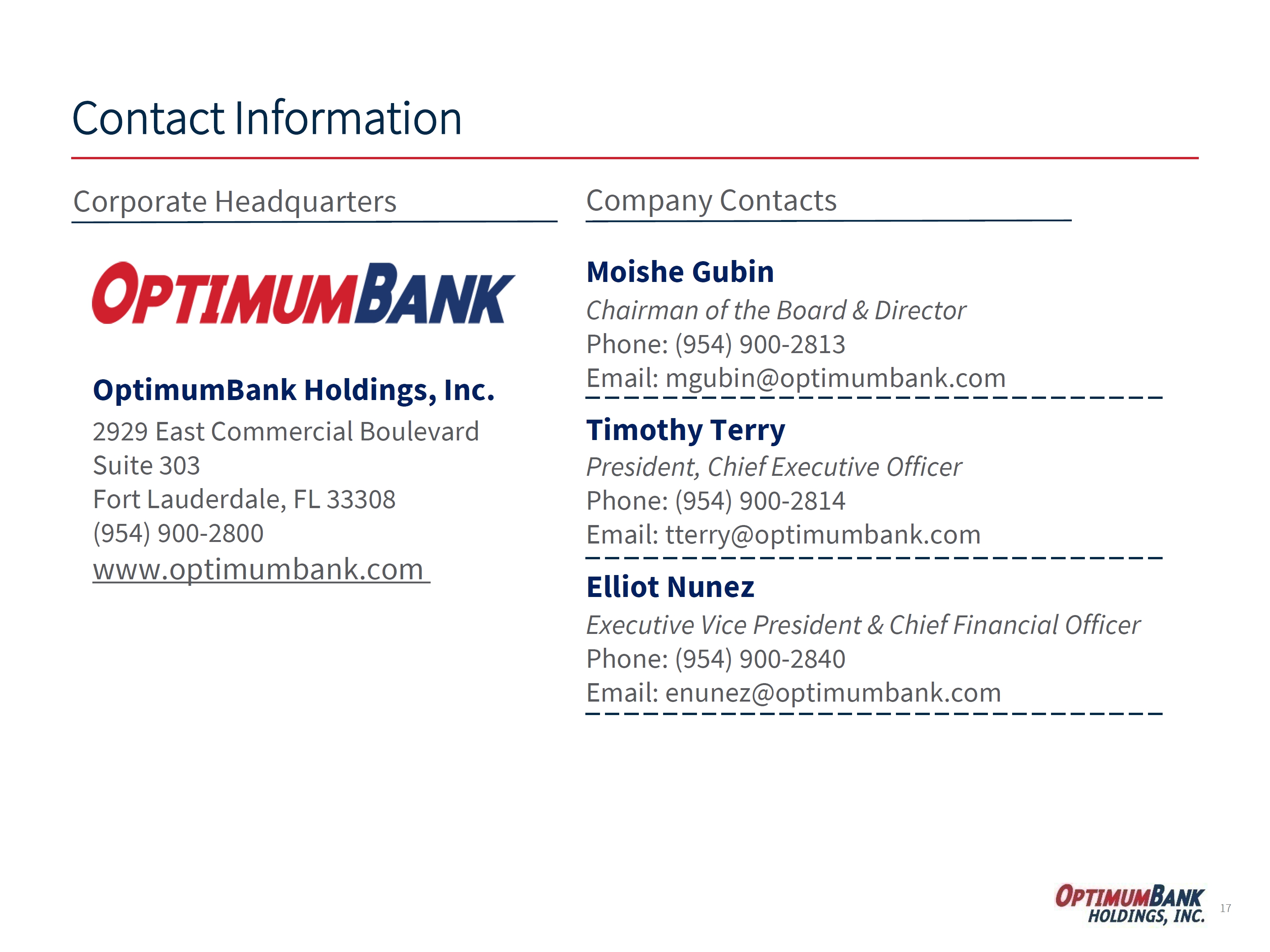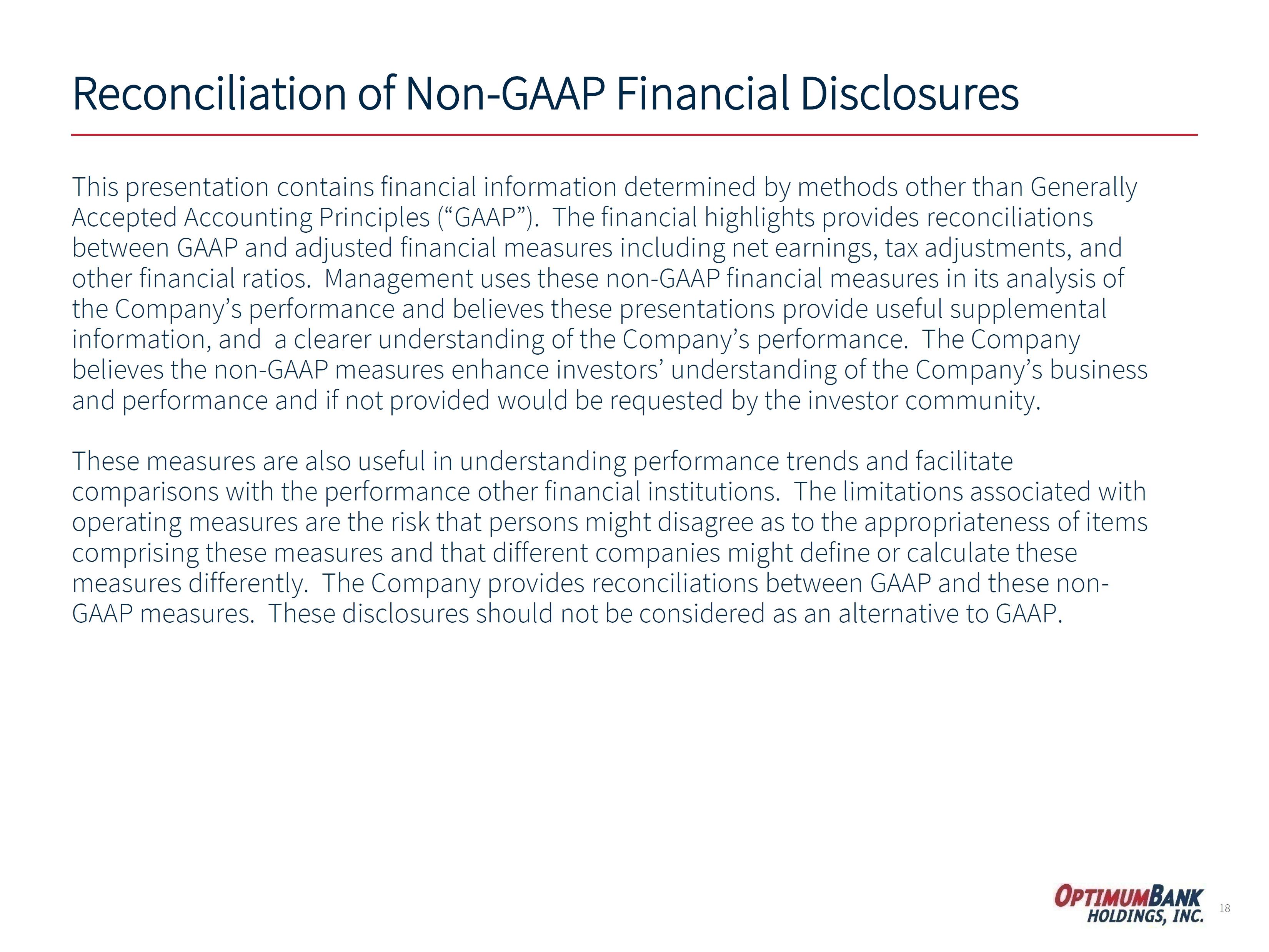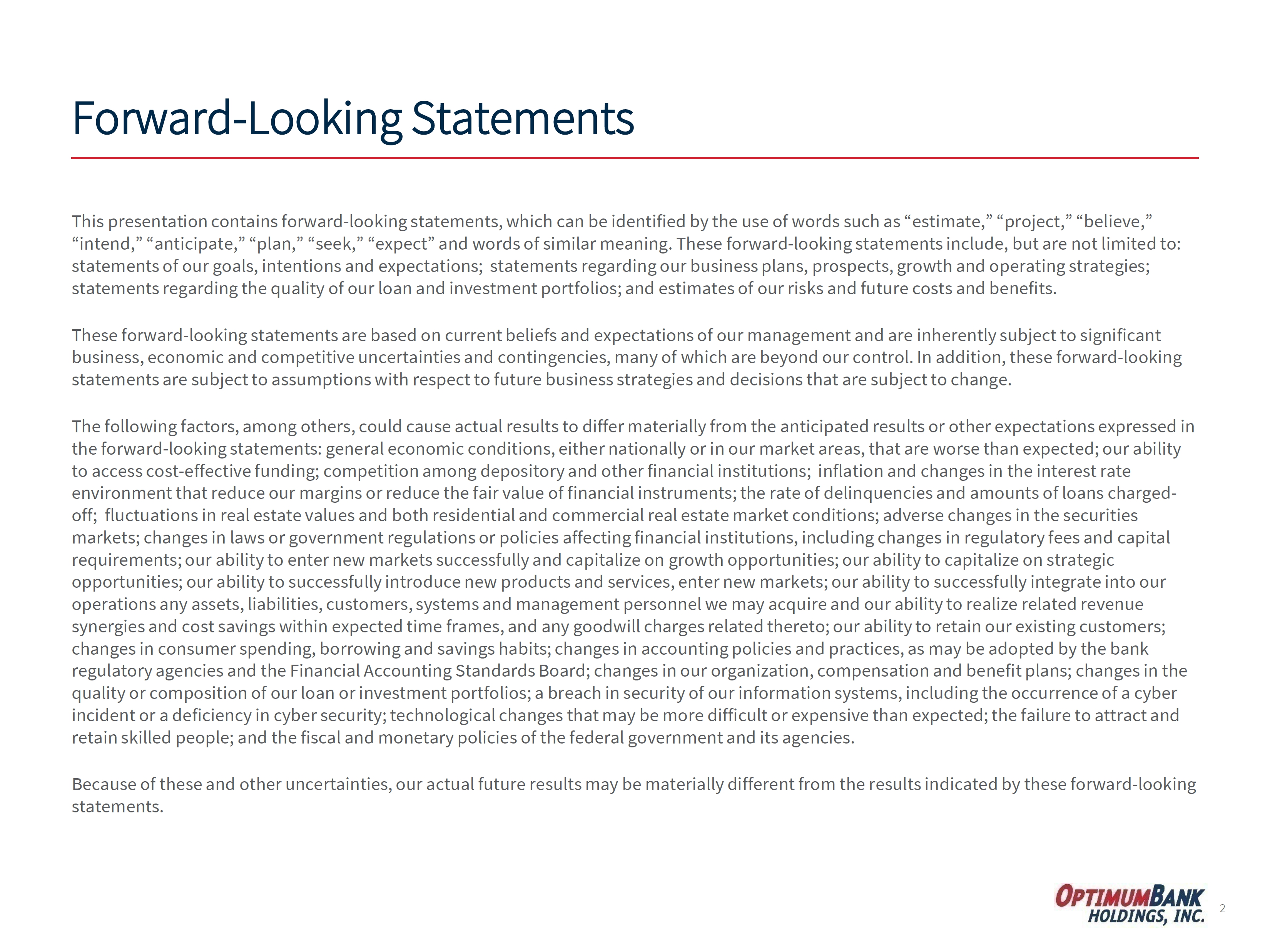 | OPTIMUMBANK HOLDINGS, INC. | ||