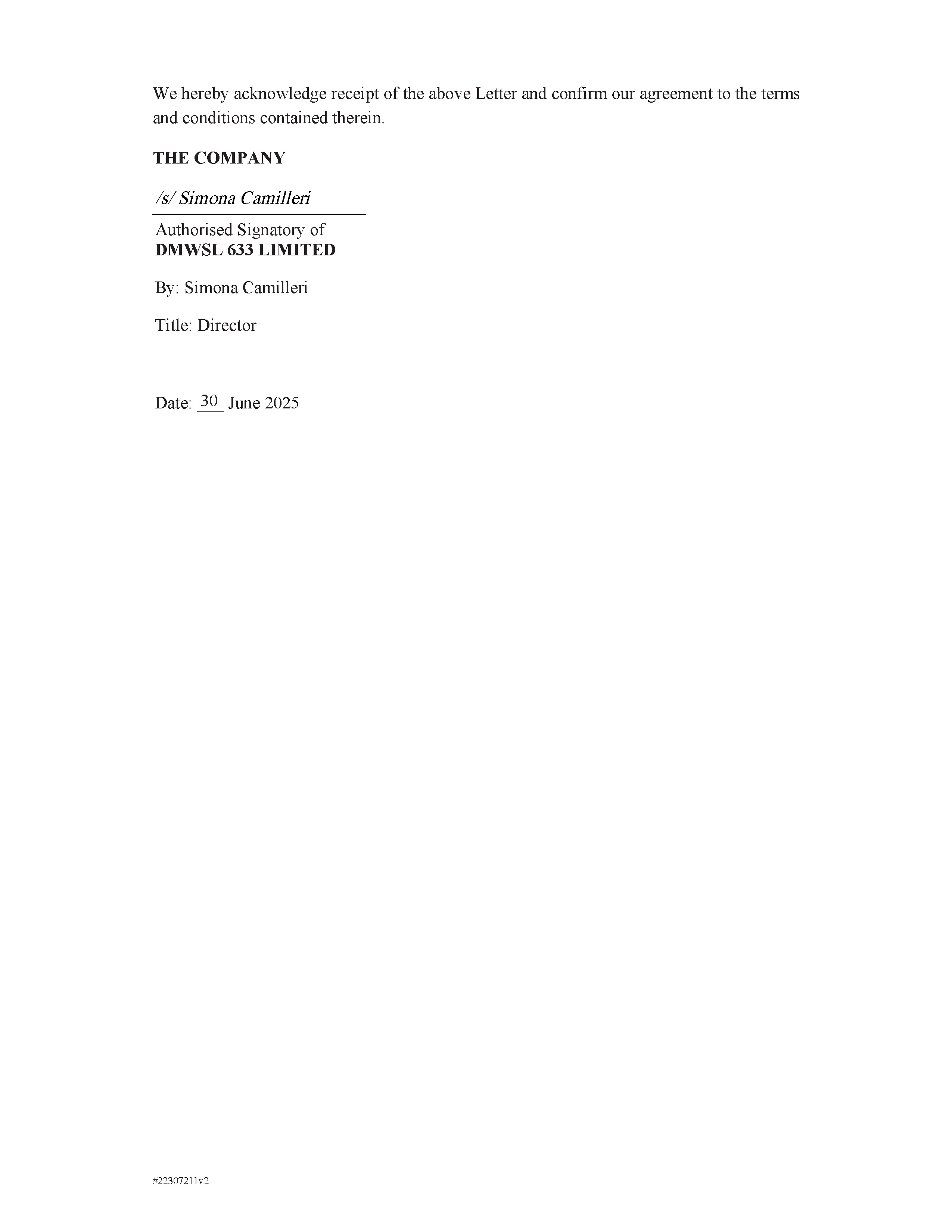| Dated: August 6, 2025 | By: | /s/ James Richardson |