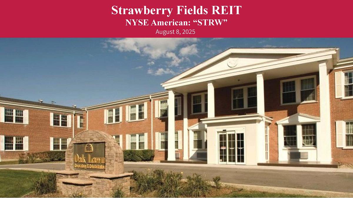 South Bend, IN. August 8, 2025 (GLOBENEWSWIRE) –Strawberry Fields REIT, Inc. (NYSE AMERICAN: STRW) (the “Company”) reported today its operating results for the quarter ended June 30, 2025.