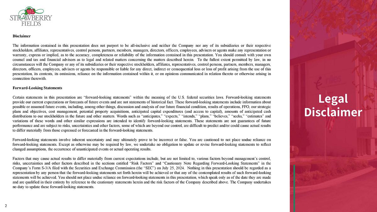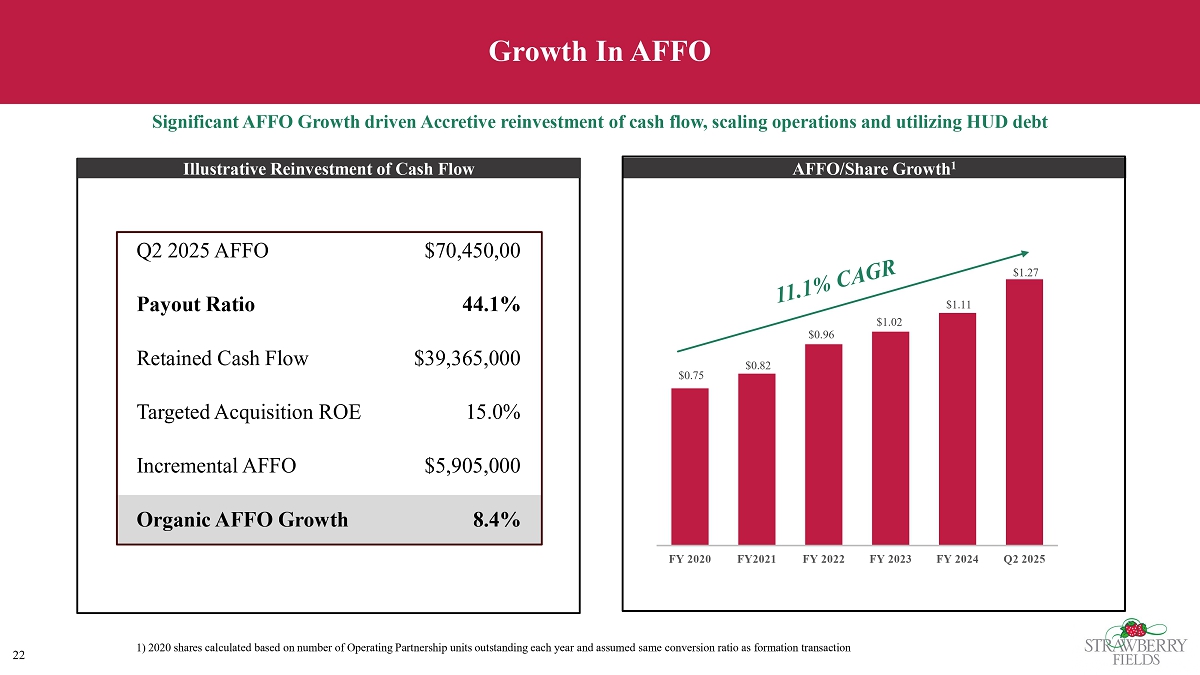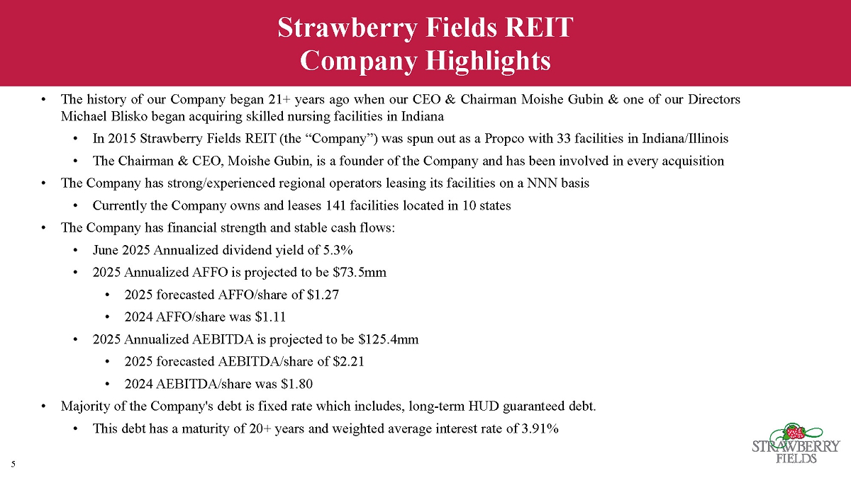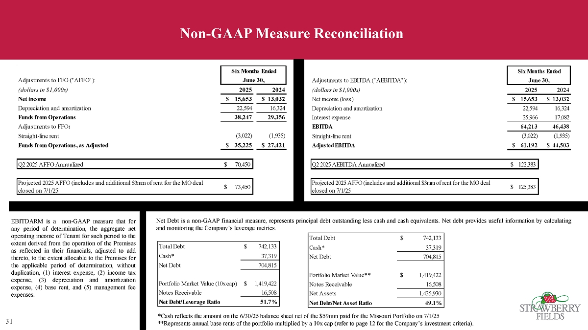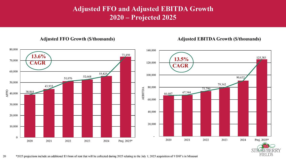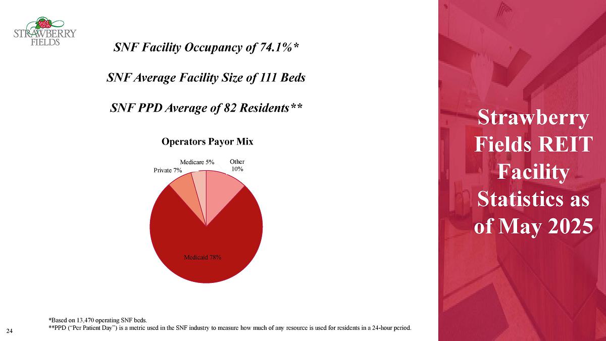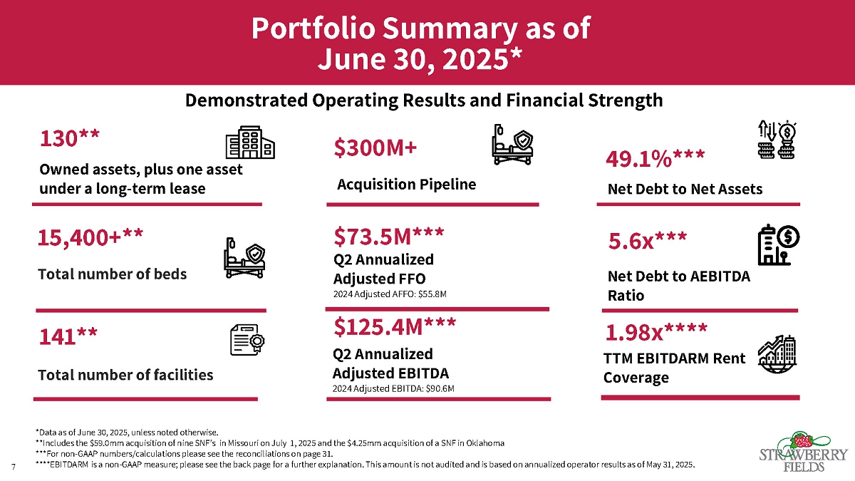 STRAWBERRY FIELDS REIT ANNOUNCES SECOND QUARTER 2025 OPERATING RESULTS