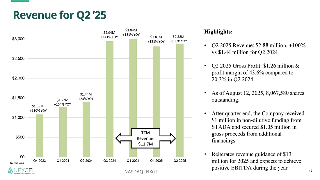 2025年8月12日、NexGel, Inc.(以下「当社」)は、2025年6月30日に終了した四半期の業績を報告するプレスリリースを発表した。