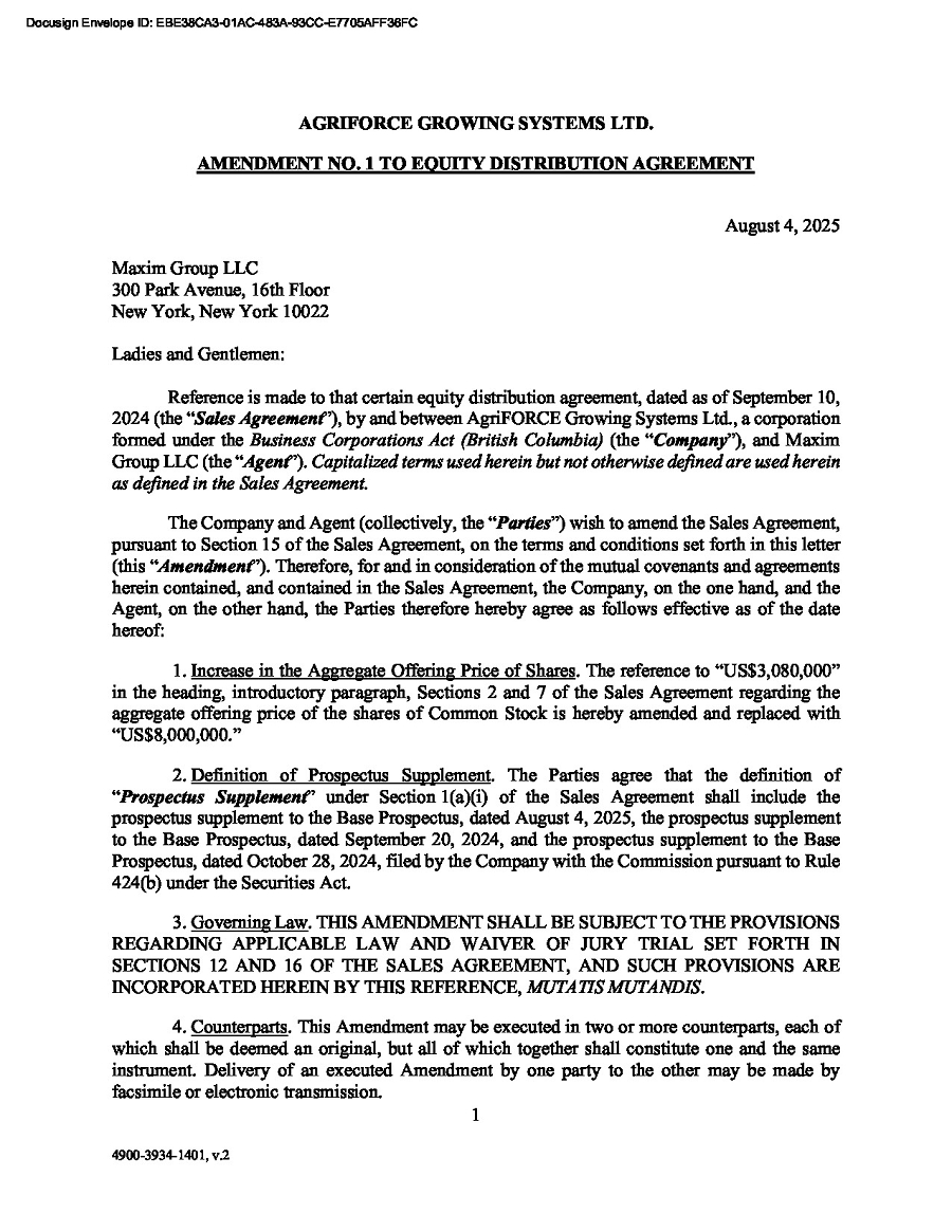 | AGRIFORCE GROWING SYSTEMS, LTD. | ||