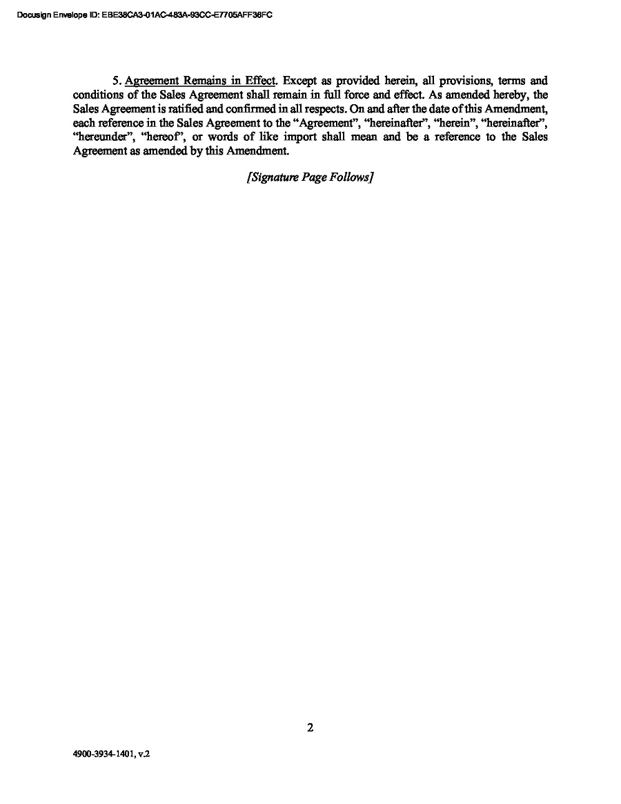 | 99.1 | Amendment to the ATM Agreement |