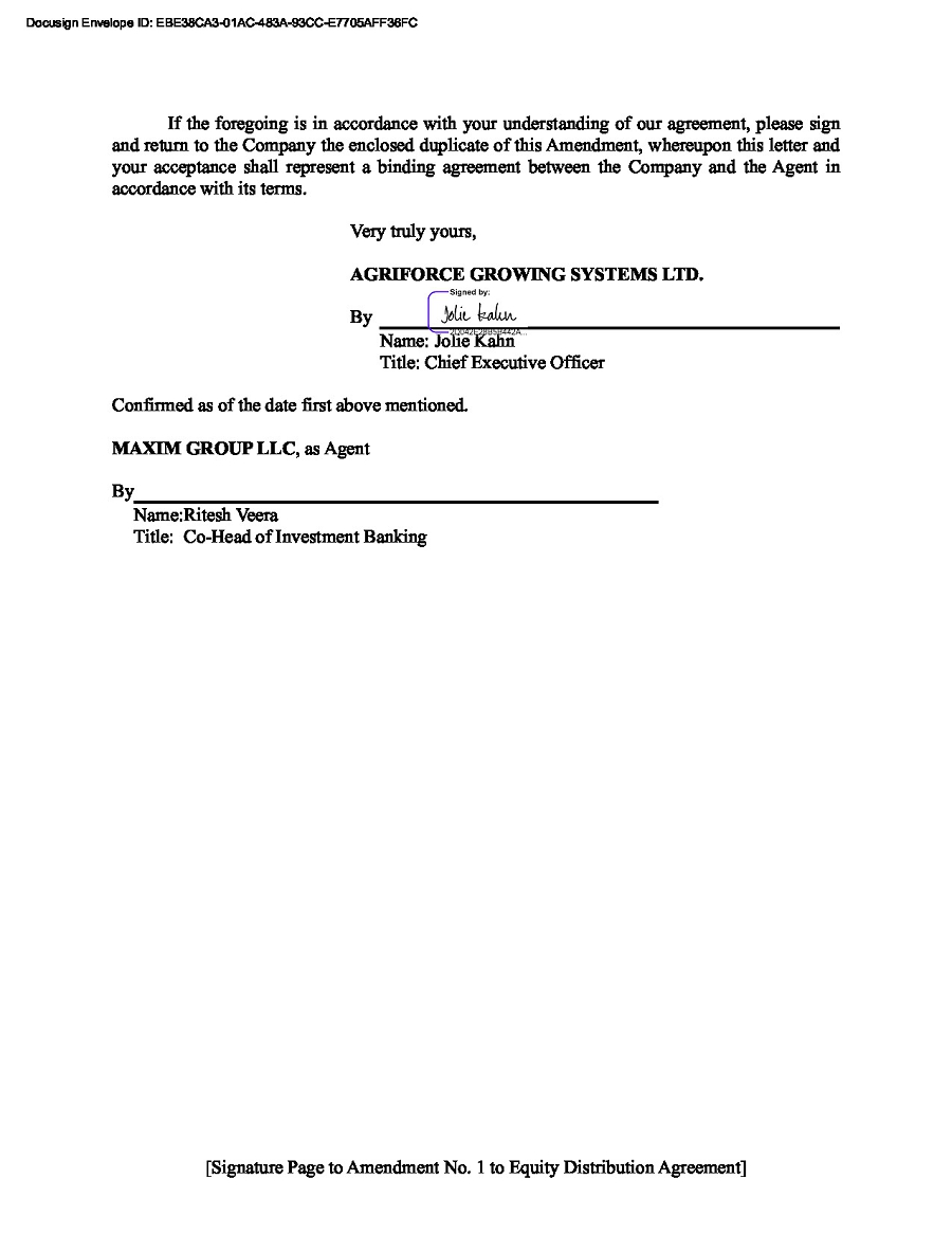 About the Quarterly Report of AgriFORCE Growing Systems, Ltd. (the “Company”) on Form 10-Q for the period ended June 30, 2025 as filed with the Securities and Exchange Commission on the date hereof (the “Report”), Jolie Kahn, Chief Executive Officer (Principal Executive Officer) of the Company, certifies, pursuant to 18 U.S.C. section 1350 of the Sarbanes-Oxley Act of 2002, that: