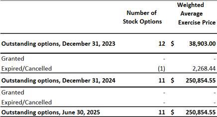 A summary of the Company’s agents’ options activity for the period ended June 30, 2025 is as follows: