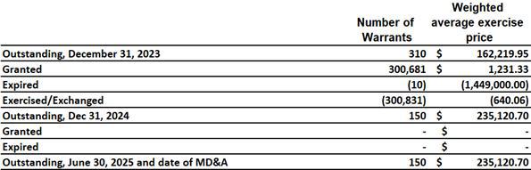 As of June 30, 2025 and the date of this MD&A, share purchase warrants outstanding and exercisable are as follows: