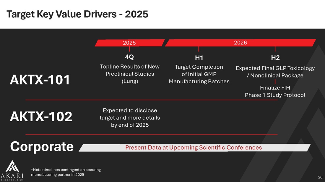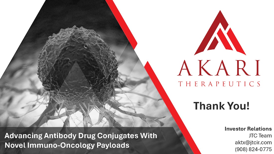 On August 19, 2025, Akari Therapeutics, Plc (the “Company”) made available an updated investor presentation, a copy of which is furnished hereto as Exhibit 99.1 to this Current Report on Form 8-K and is incorporated herein by reference. Representatives of the Company will use the updated presentation in various meetings from time to time.