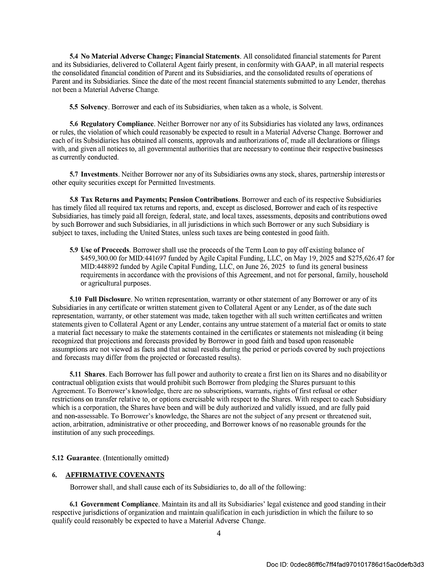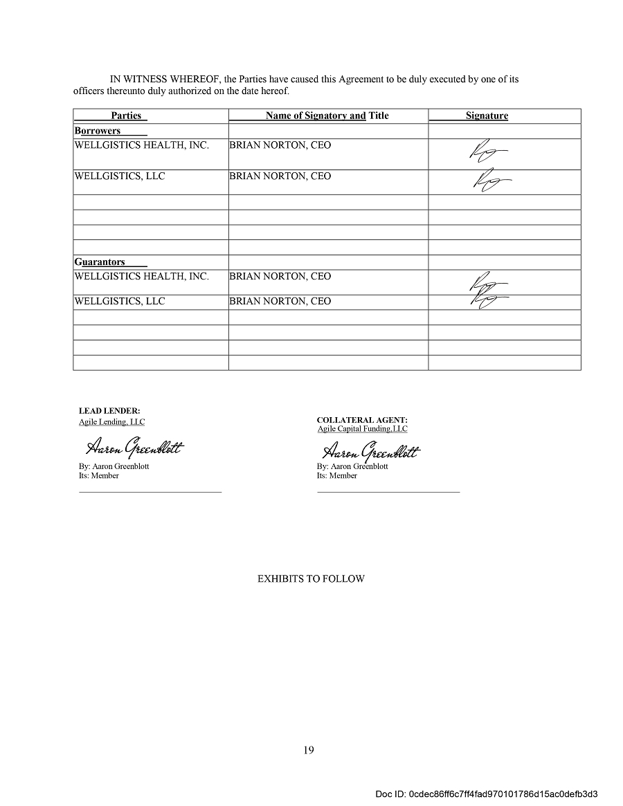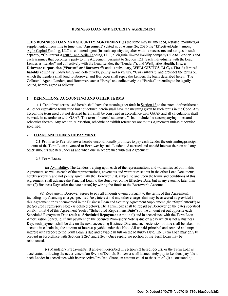| 10.1# | Business Loan and Security Agreement dated as of August 26, 2025, among Agile Capital Funding, LLC, Wellgistics Health, Inc., and Wellgistics, LLC. | |