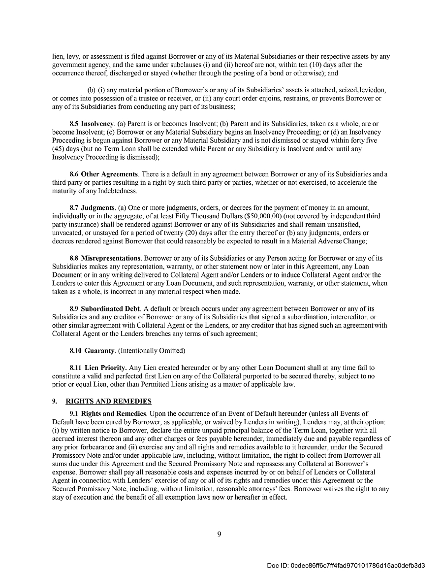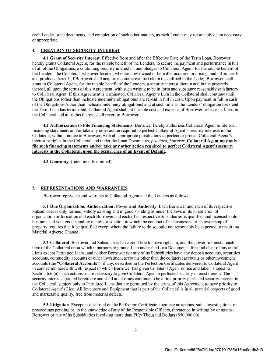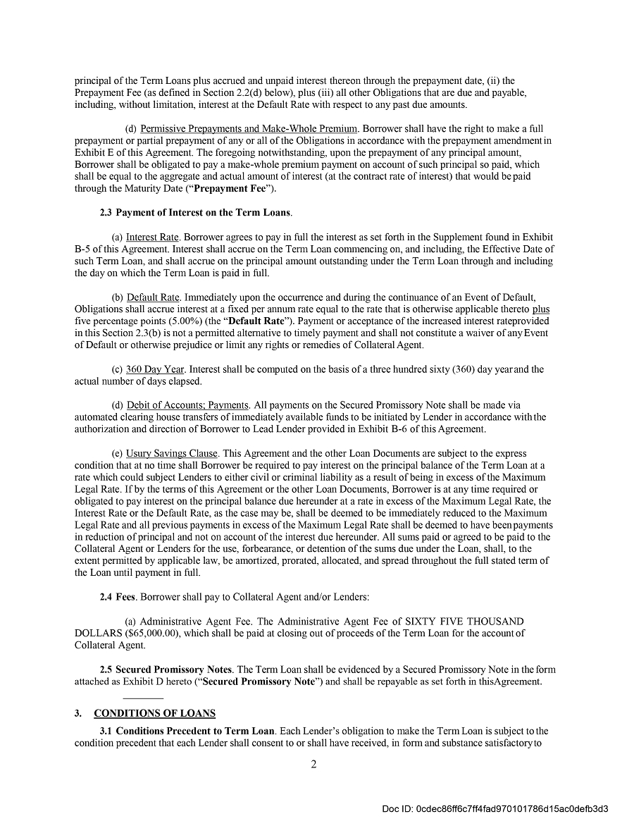 The foregoing description of the Agile Loan does not purport to be complete and is qualified in its entirety by reference to the full text of the Agile Loan, a copy of which is filed as Exhibit 10.1 to this Current Report on Form 8-K and is incorporated by reference herein.