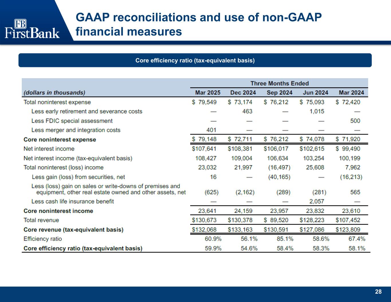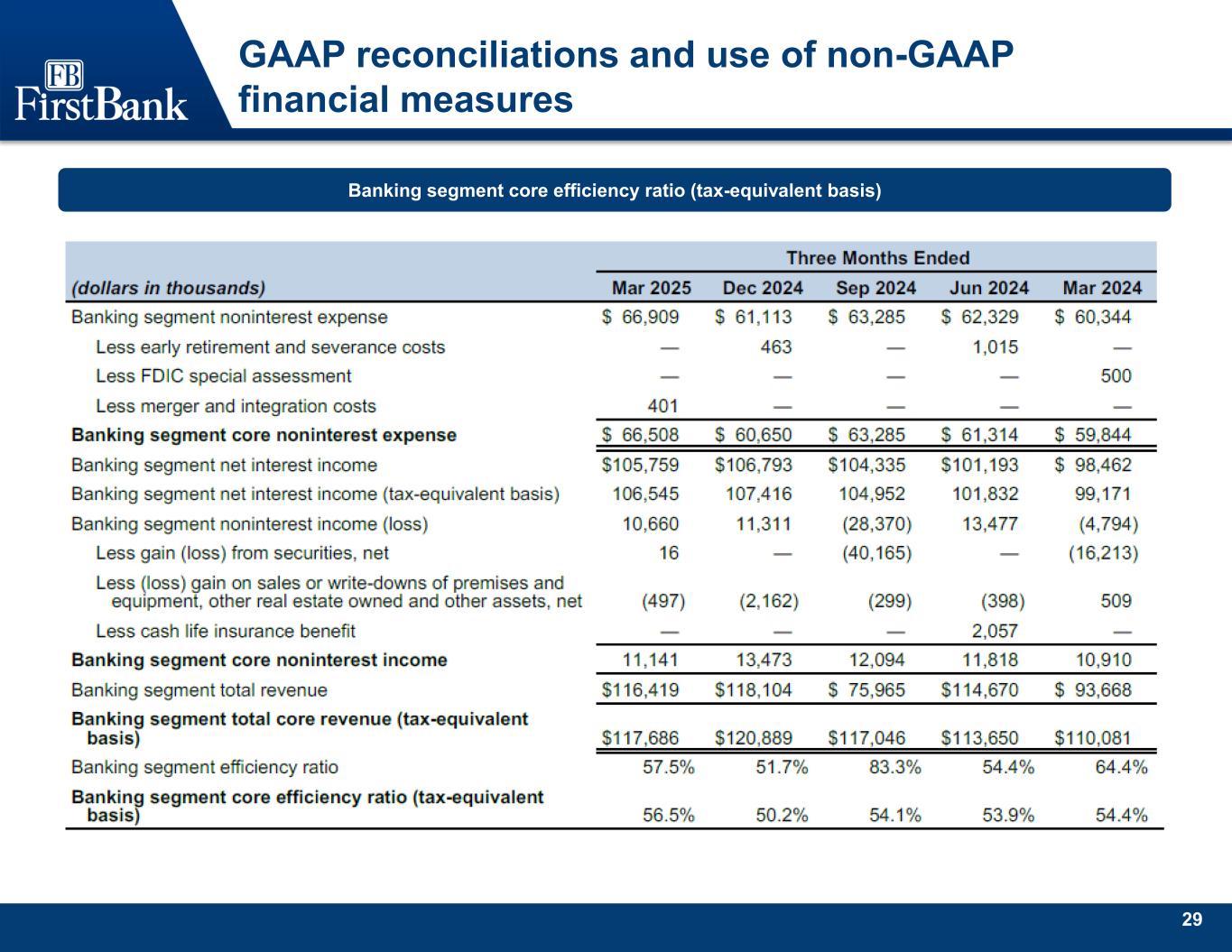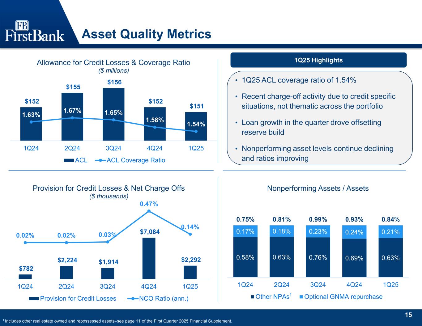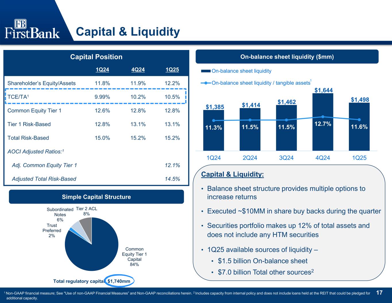 FB Financial Corporation (NYSE: FBK) is a bank holding company headquartered in Nashville, Tennessee. FB Financial operates through its wholly owned banking subsidiary, FirstBank, with 77 full-service bank branches across Tennessee, Alabama, Kentucky, and North Georgia, and mortgage offices across the Southeast. FB Financial Corporation has approximately $13.1 billion in total assets as of March 31, 2025.