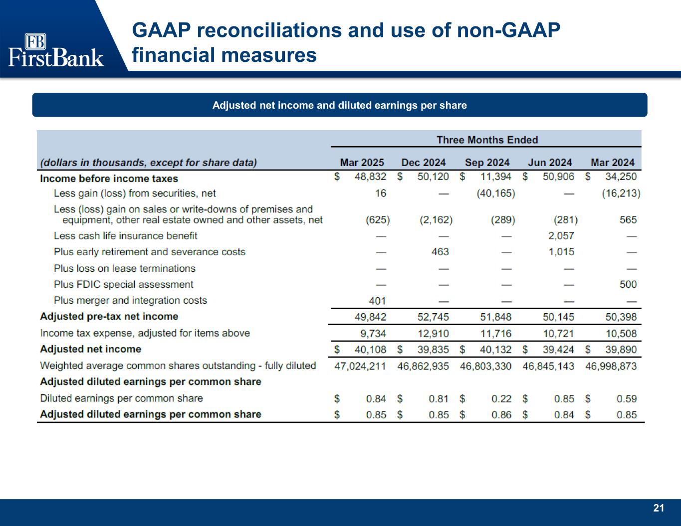 Further information regarding FB Financial and factors which could affect the forward-looking statements contained herein can be found in FB Financial’s Annual Report on Form 10-K for the fiscal year ended December 31, 2024, and in any of FB Financial’s subsequent filings with the Securities and Exchange Commission (“SEC”). Many of these factors are beyond FB Financial’s ability to control or predict. If one or more events related to these or other risks or uncertainties materialize, or if the underlying assumptions prove to be incorrect, actual results may differ materially from the forward-looking statements. Accordingly, shareholders and investors should not place undue reliance on any such forward-looking statements. Any forward-looking statement speaks only as of the date of this press release, and FB Financial undertakes no obligation to publicly update or review any forward-looking statement, whether as a result of new information, future developments or otherwise, except as required by law. New risks and uncertainties may emerge from time to time, and it is not possible for FB Financial to predict their occurrence or how they will affect FB Financial. FB Financial qualifies all forward-looking statements by these cautionary statements.