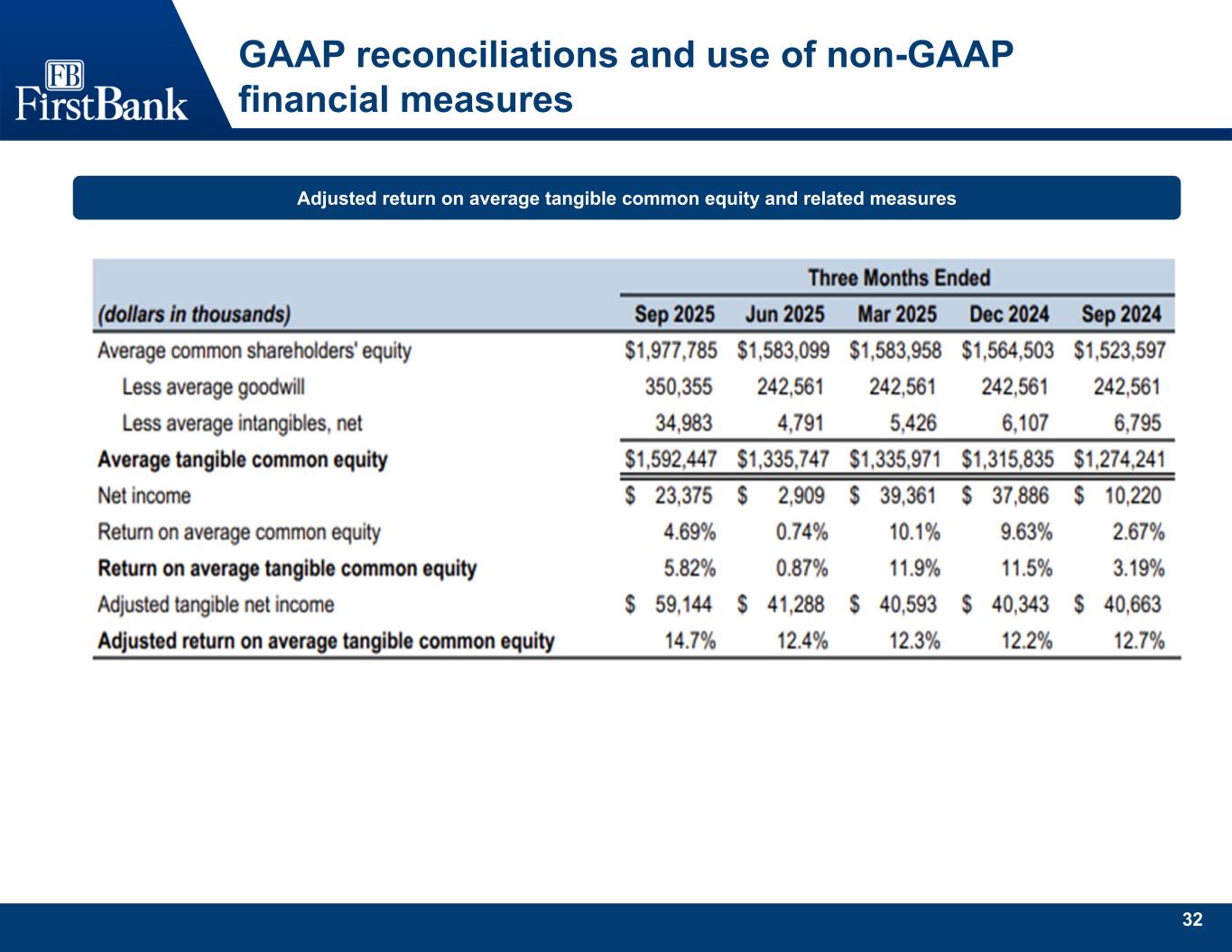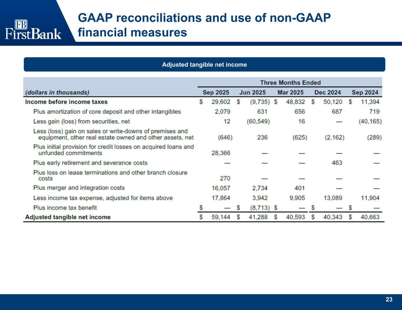 25 GAAP reconciliations and use of non-GAAP financial measures Adjusted tangible net income