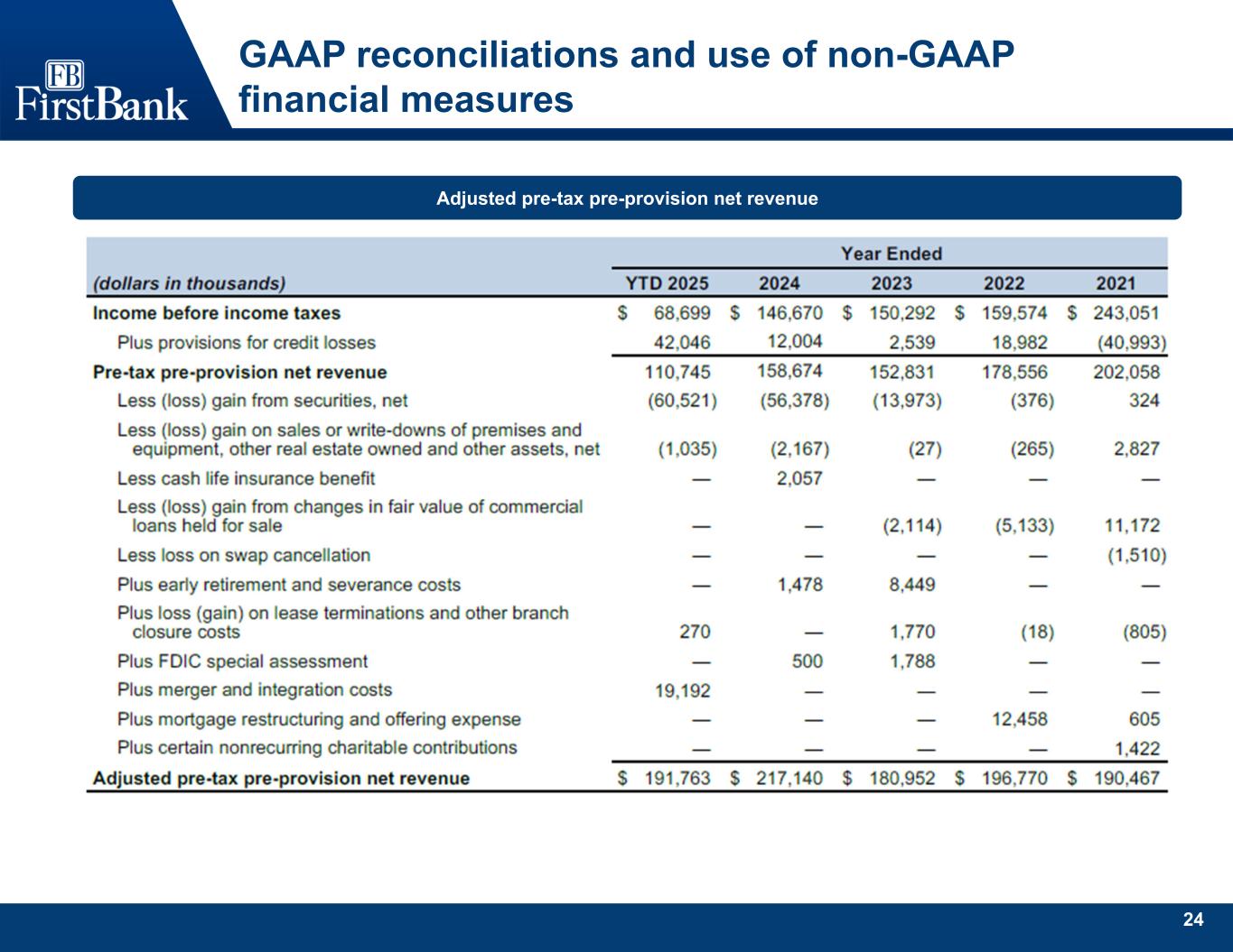 24 GAAP reconciliations and use of non-GAAP financial measures Adjusted pre-tax pre-provision net revenue