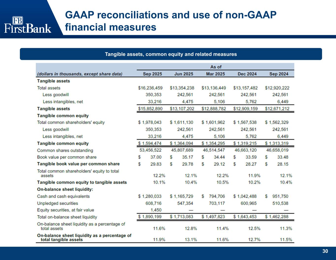 30 GAAP reconciliations and use of non-GAAP financial measures Tangible assets, common equity and related measures