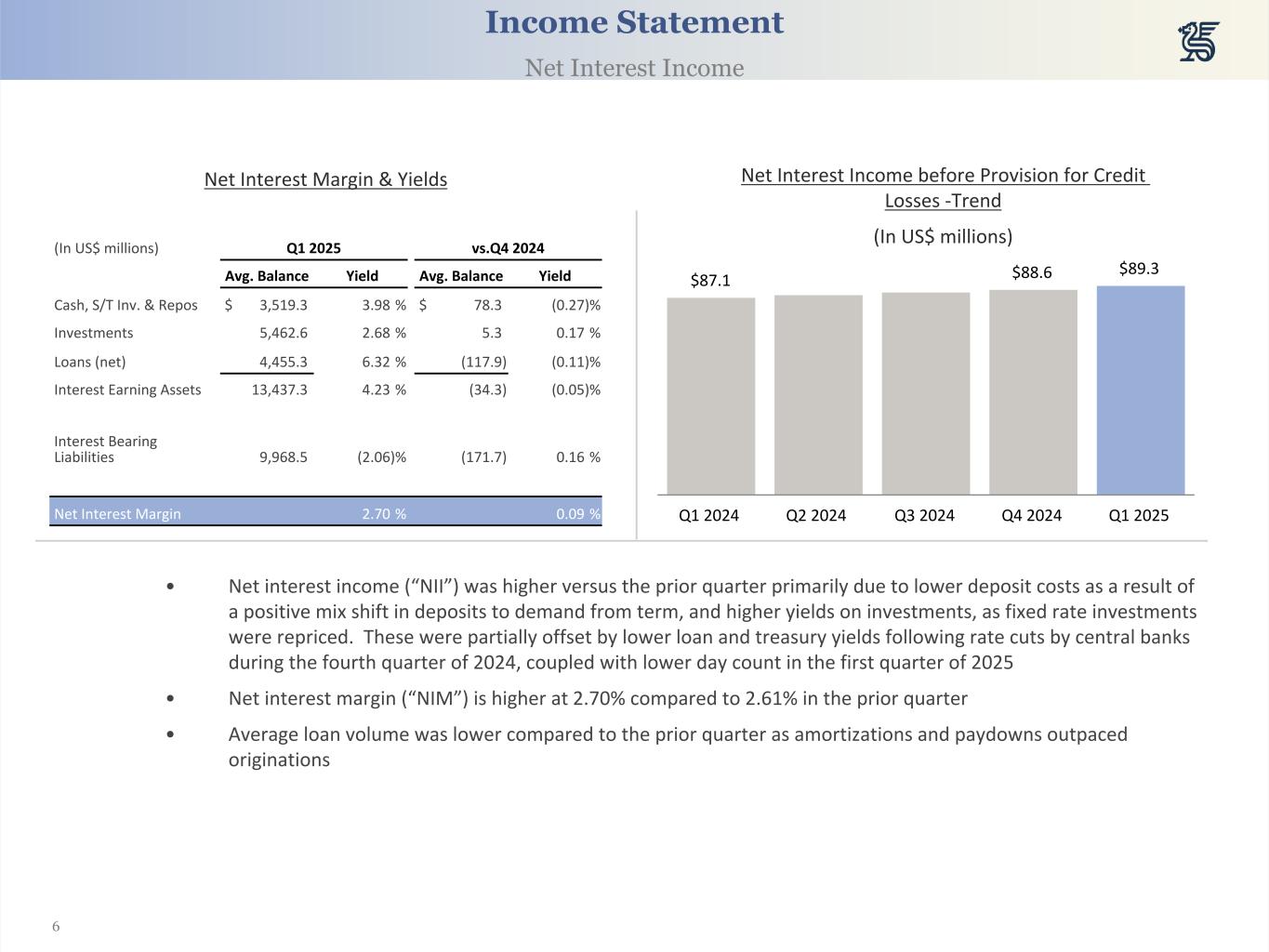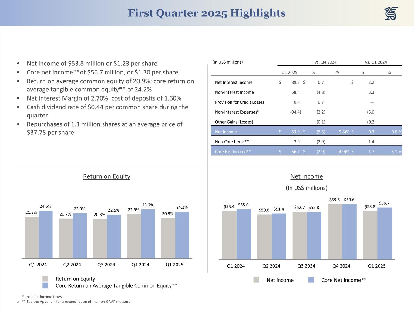 During the three months ended March 31, 2025, the Bank declared and paid cash dividends of $0.44 (March 31, 2024: $0.44) for each common share as of the related record dates. On April 23, 2025, the Board of Directors declared an interim dividend of $0.44 per common share to be paid on May 21, 2025 to shareholders of record on May 7, 2025.