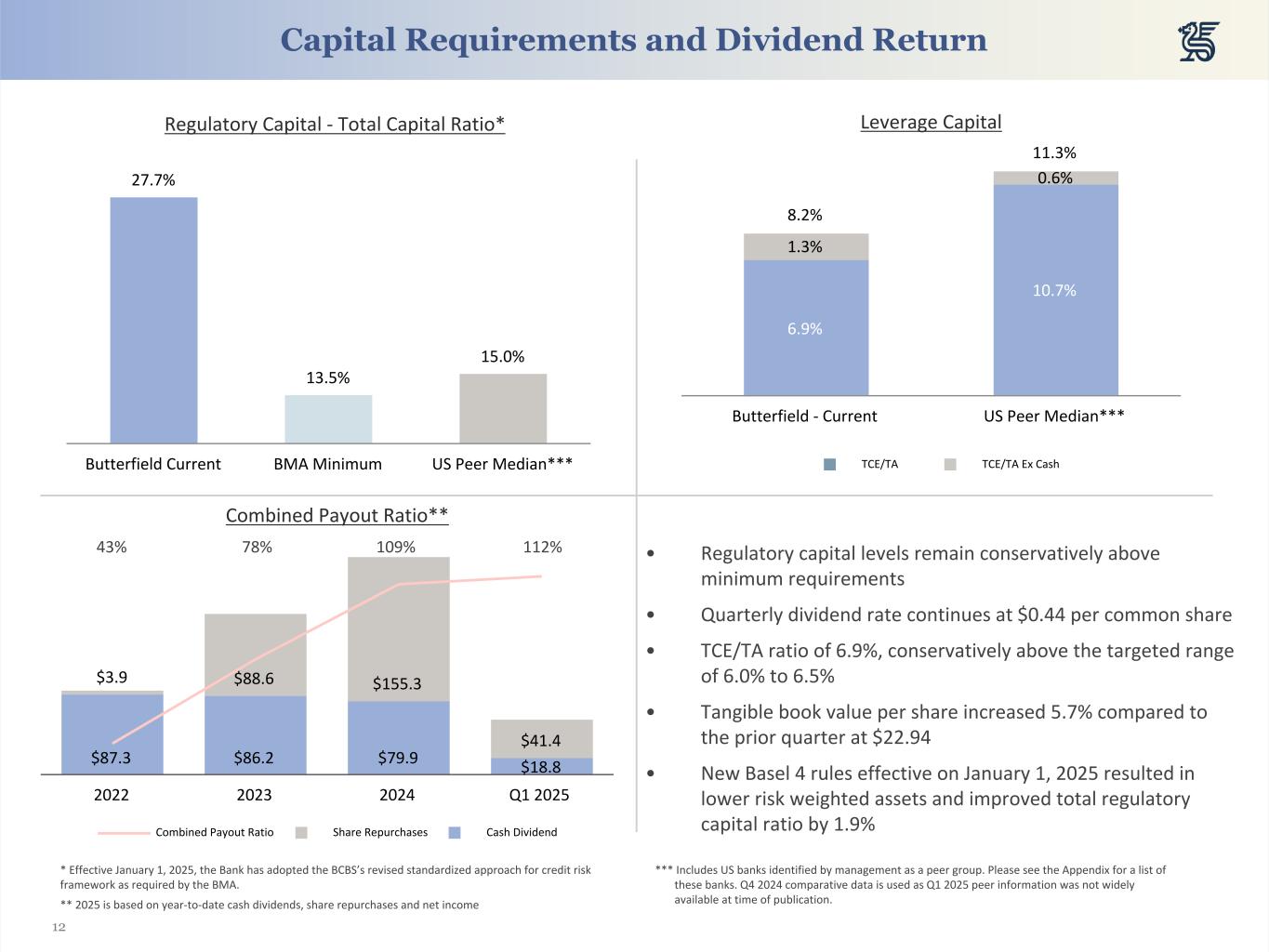 The Bank’s regulatory capital is determined in accordance with current Basel guidelines as issued by the BMA. The Bank is fully compliant with all regulatory capital requirements to which it is subject, and it maintains capital ratios in excess of regulatory minimums as at March 31, 2025 and December 31, 2024. The following table sets forth the Bank's capital adequacy in accordance with the relevant Basel framework: