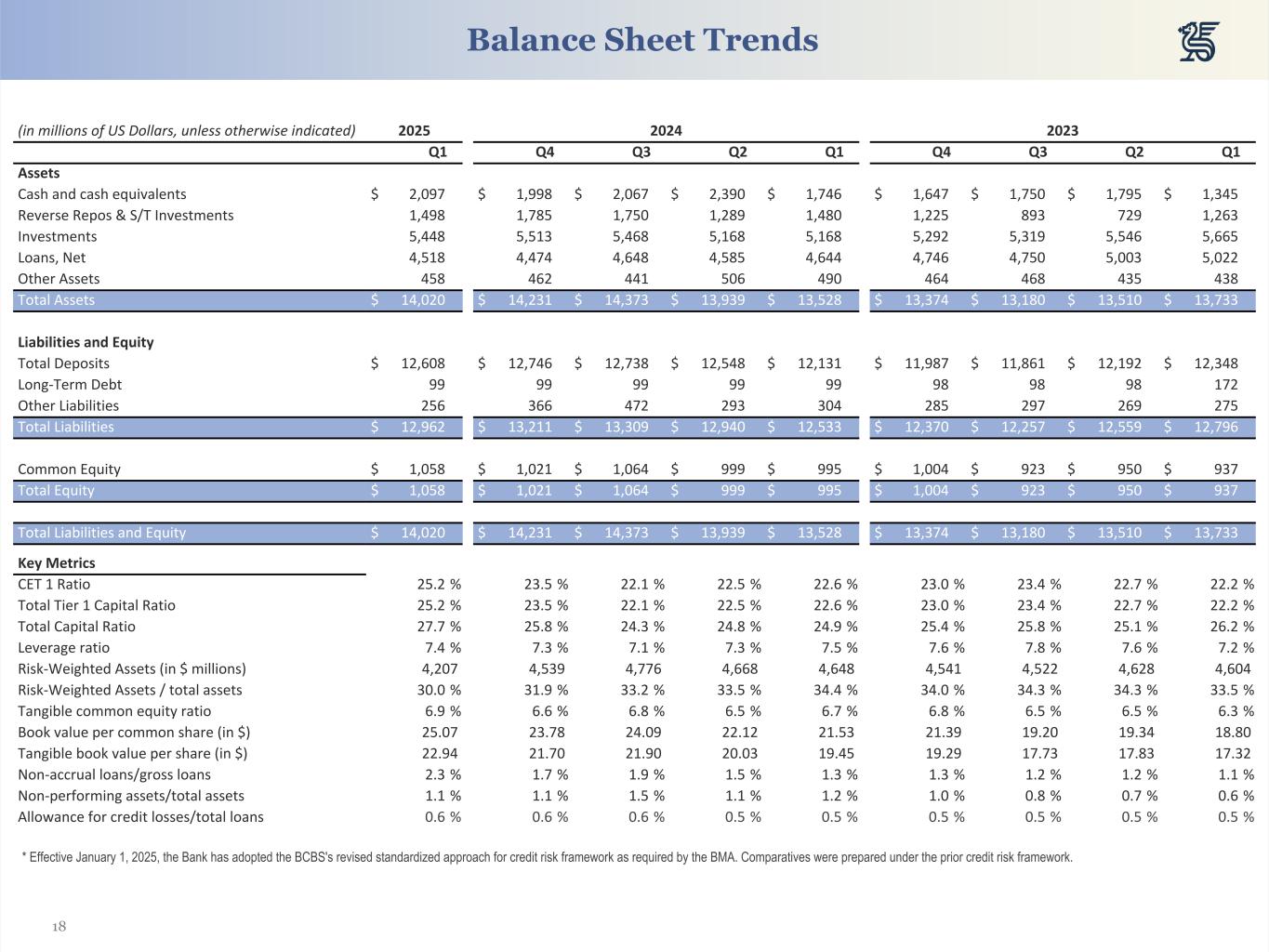 Effective January 1, 2025, the Bank has adopted the Basel Committee on Banking Supervision's revised standardized approach for credit risk framework as required by the BMA. Comparatives were prepared under the prior credit risk framework.