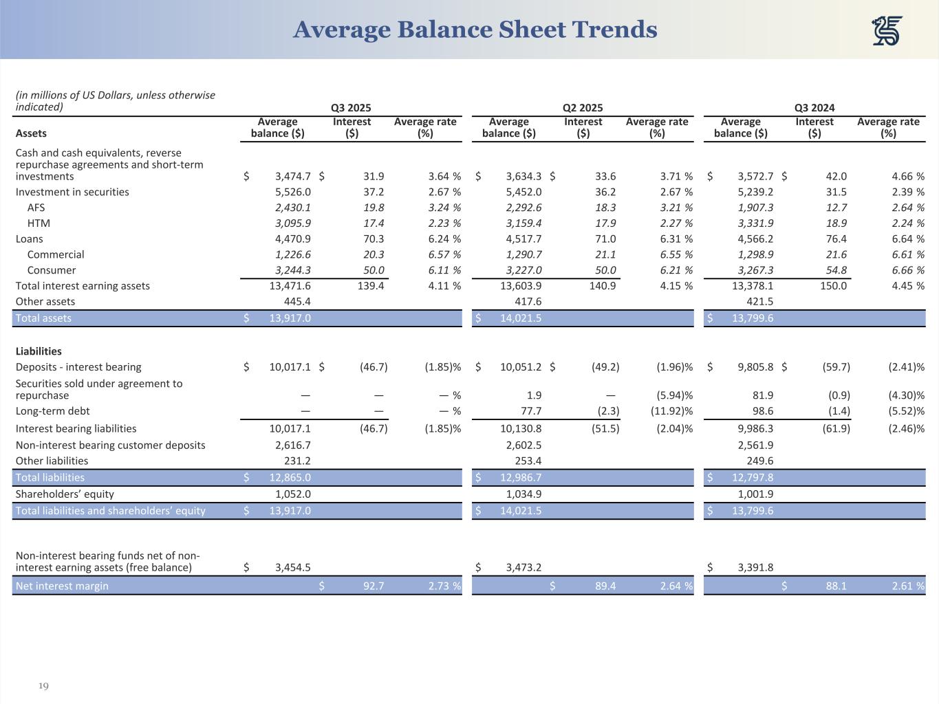 | Interest earning assets | 13,471.6 | 139.4 | 4.11 | 13,603.9 | 140.9 | 4.15 | 13,378.1 | 150.0 | 4.45 | ||||||||||||||||||||||||||