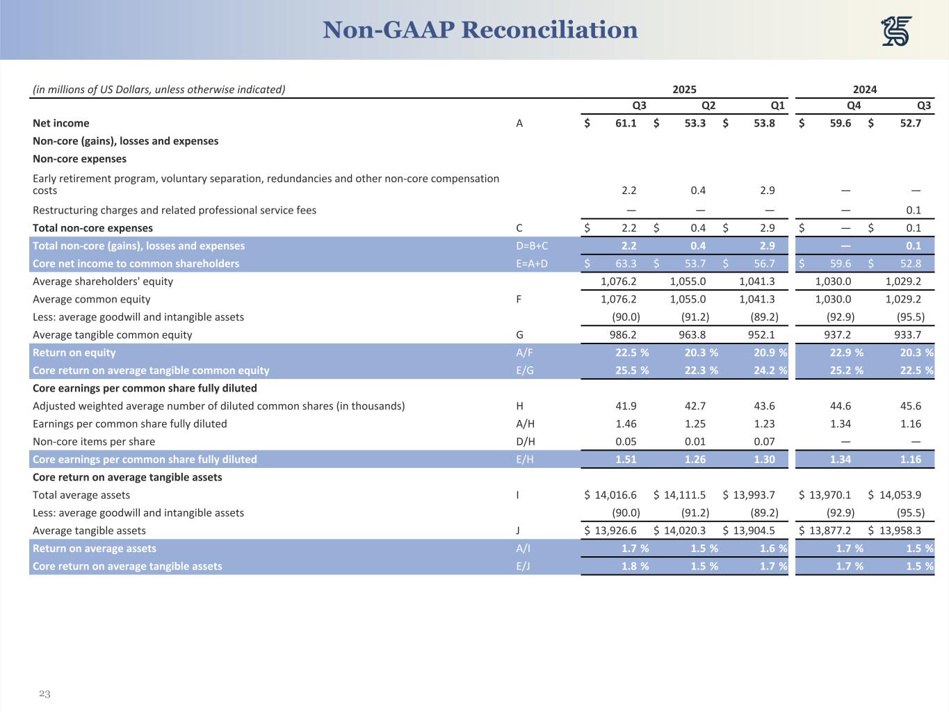 | Return on common equity | 22.5 | % | 20.3 | % | 20.3 | % | ||||||||||||||
