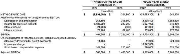 WidePoint uses a variety of operational and financial metrics, including non-GAAP financial measures such as EBITDA and Adjusted EBITDA, to enable it to analyze its performance and financial condition. The presentation of non-GAAP financial information should not be considered in isolation or as a substitute for, or superior to, the financial information prepared and presented in accordance with GAAP. A reconciliation of GAAP Net income to EBITDA and Adjusted EBITDA is provided below: