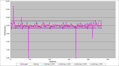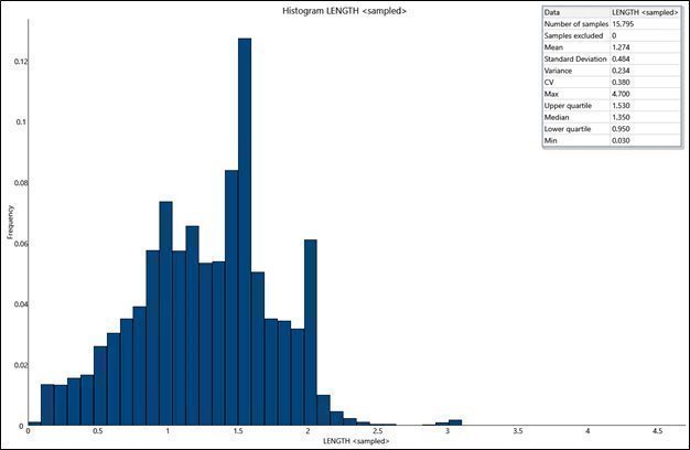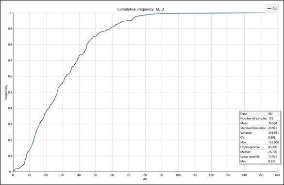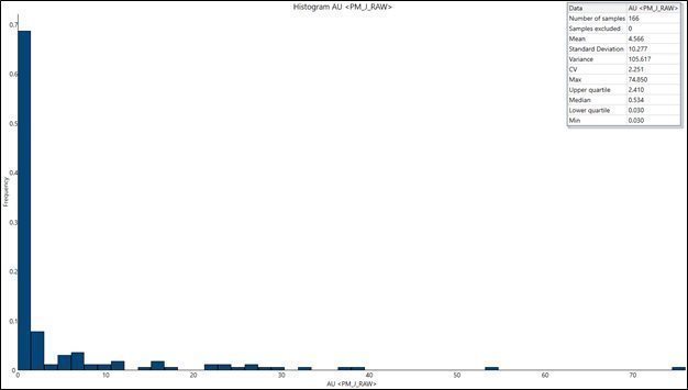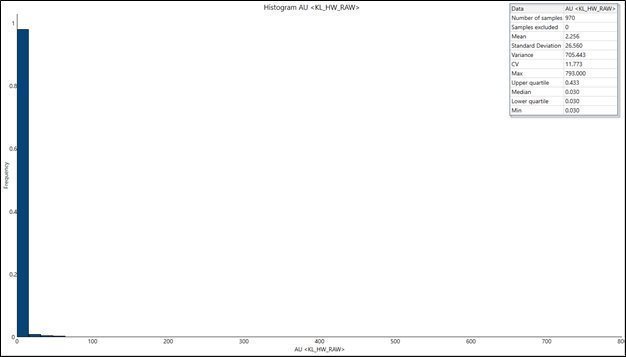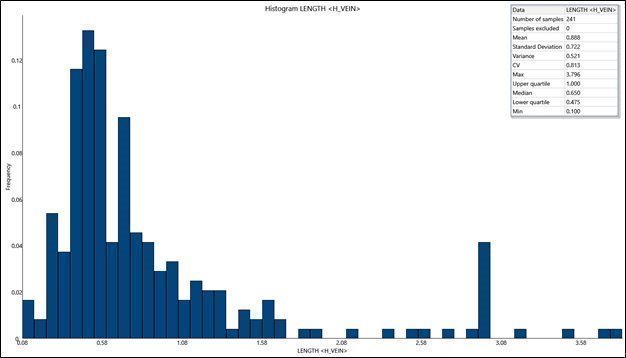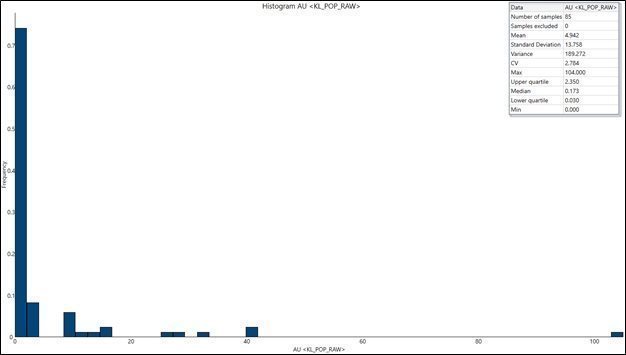 Figure 27‑6 Klondike Area Popcorn Vein Histogram and Raw Statistics