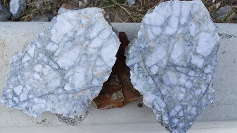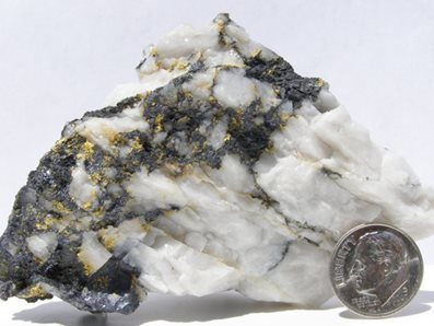 Arsenopyrite-An iron-arsenic sulfide. Common constituent of gold mineralization.