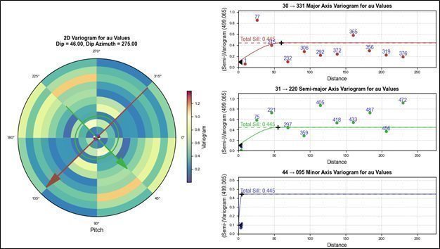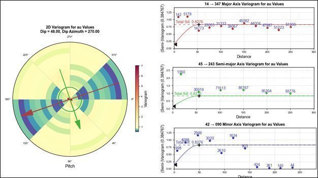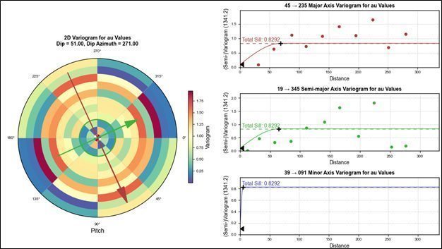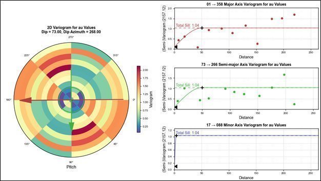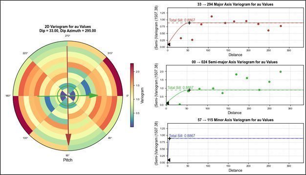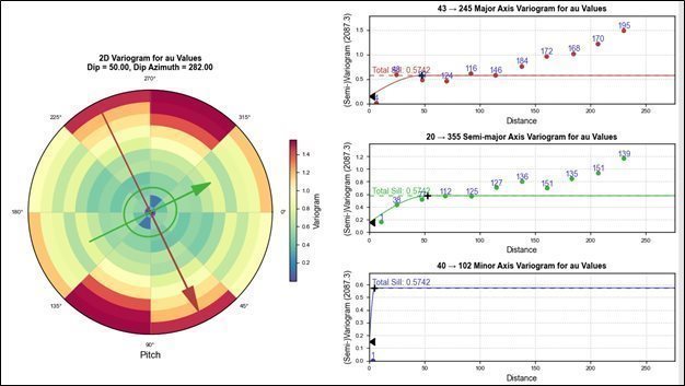 Figure 28‑5 Paymaster Area Jumbo Vein Experimental Variogram with Modeled Variogram