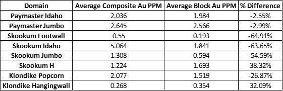 Figure 27‑2 Skookum Area H Vein Histogram and Raw Statistics