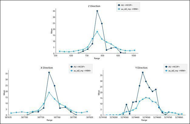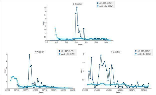 Figure 28‑3 Skookum Zone Footwall Domain Experimental Variogram and Modeled Variogram