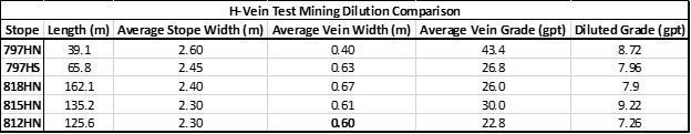 Note: Only Mined areas excluded from the shape. The cutoffs on this curve do not correlate to Reserve or Resource cutoffs. These cutoffs represent the total material available in the remaining vein shapes above a certain cutoff value. The Reserve and Resource use various cutoffs based on mining method and location. The H-Vein tonnes above a given cutoff in this curve are not diluted to a minimum mining width and represent only H-Vein tonnes above a certain cutoff.