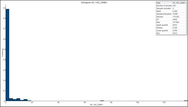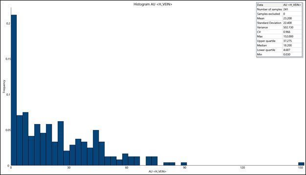 Figure 27‑1 Skookum Area Jumbo Vein Histogram and Raw Statistics