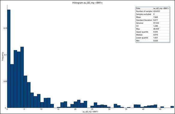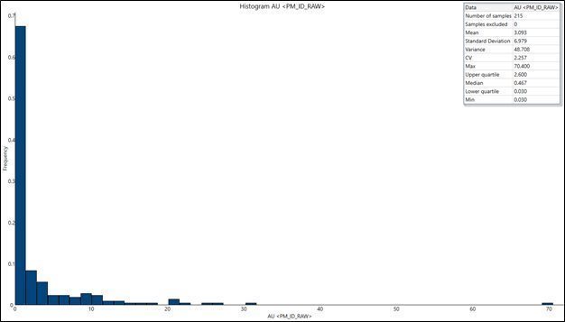 Figure 27‑4 Paymaster Area Idaho Vein Histogram and Raw Statistics